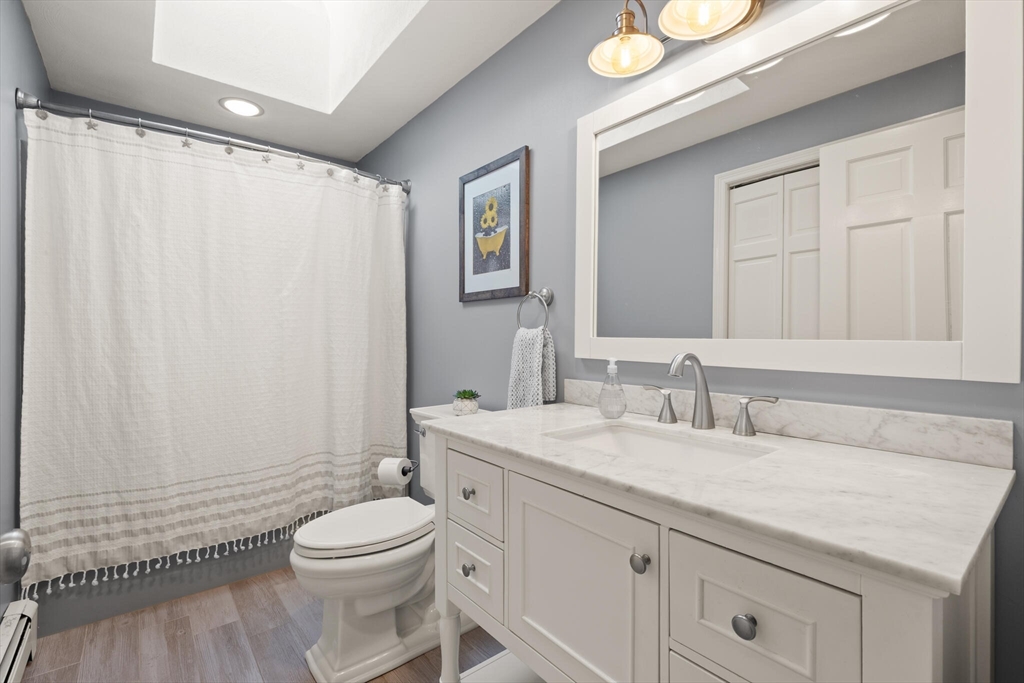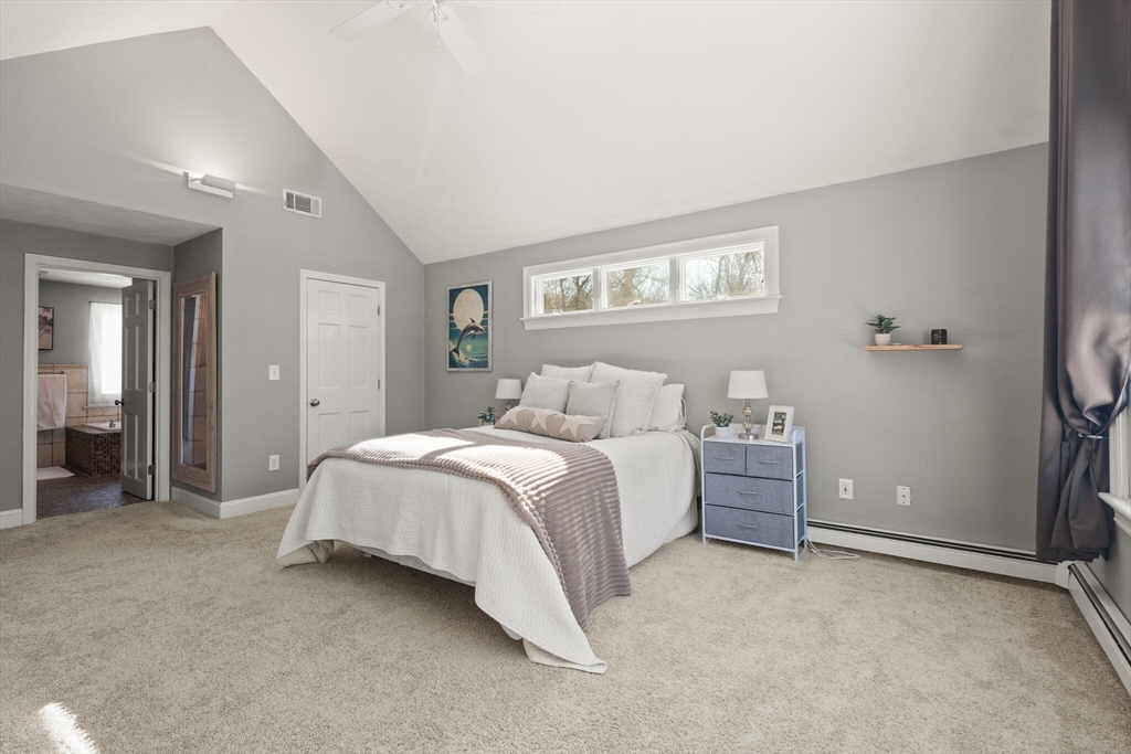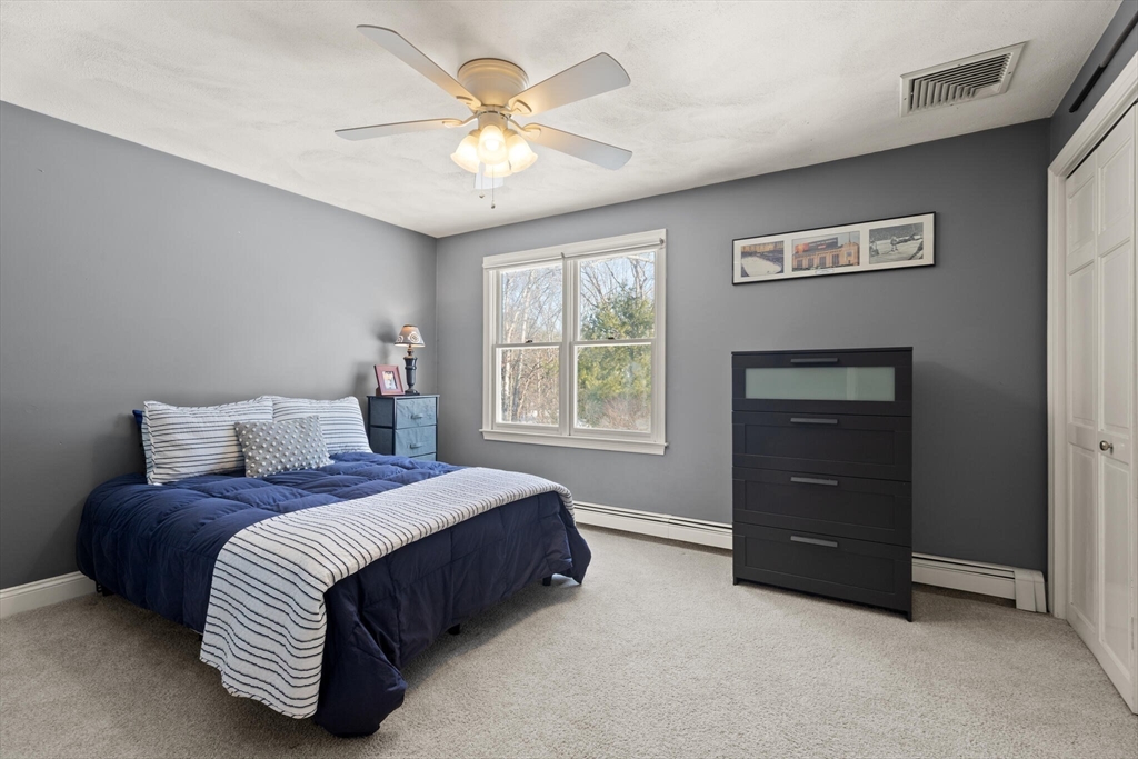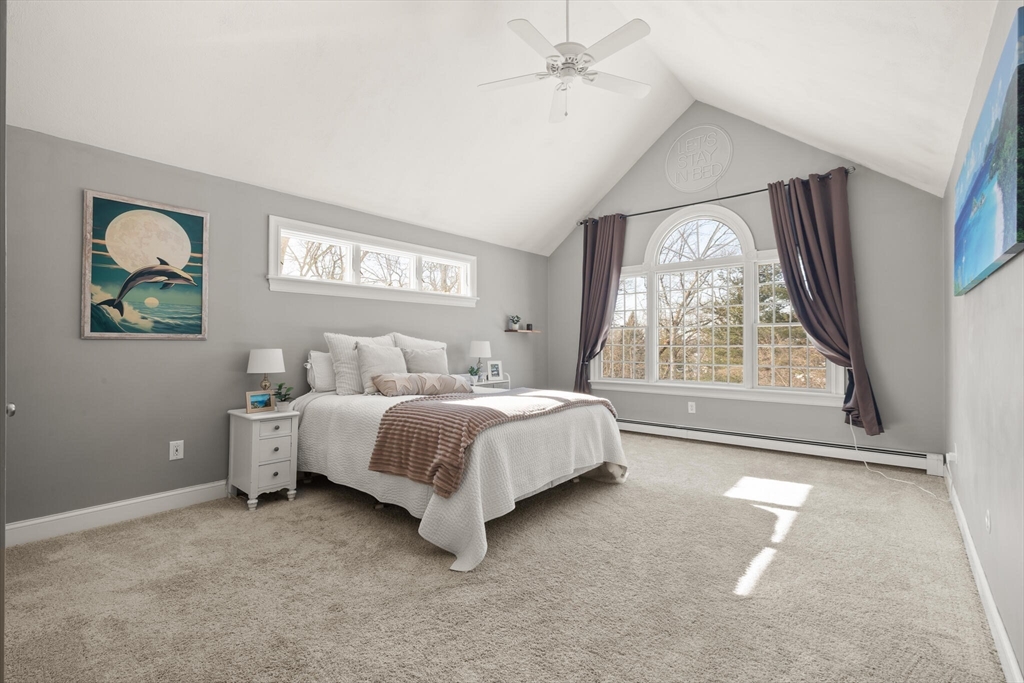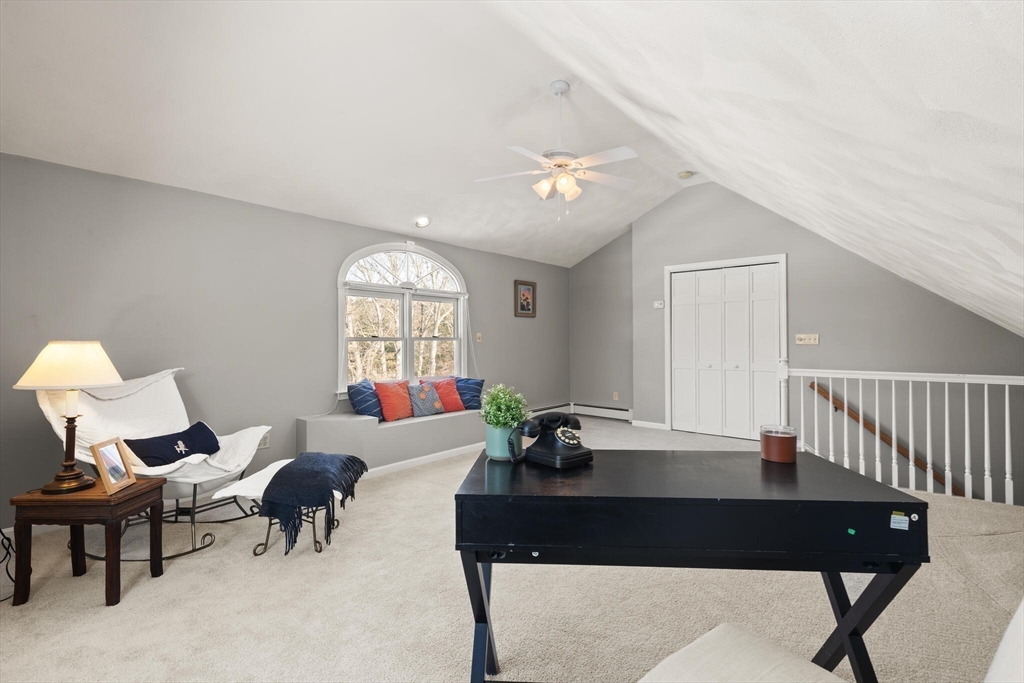 Set on a picture-perfect cul-de-sac in a desirable, established West Wrentham neighborhood, this 4-bedroom, 2.5-bath Colonial is thoughtfully positioned on a private 2+ acre lot. The non-traditional floor plan features a standout family room with vaulted ceilings, a dramatic floor-to-ceiling brick fireplace, and an energy-efficient pellet stove for cozy New England evenings. An inviting and cheerful sunroom, wrapped in windows, offers exceptional natural light and serene views of the surrounding landscape. The primary suite features a private bath and walk-in closet, complemented by two additional bedrooms and a full bath on the second floor. A bonus bedroom over the garage provides ideal space for guests, home office, or hobbies. The finished area in the basement provides even more space for entertainment and recreation! Lovingly maintained and ready for its new homeowner, 10 Follett Drive is sure to check all the boxes on your "Dream Home Checklist".