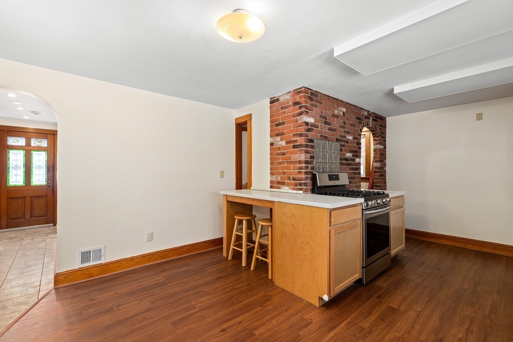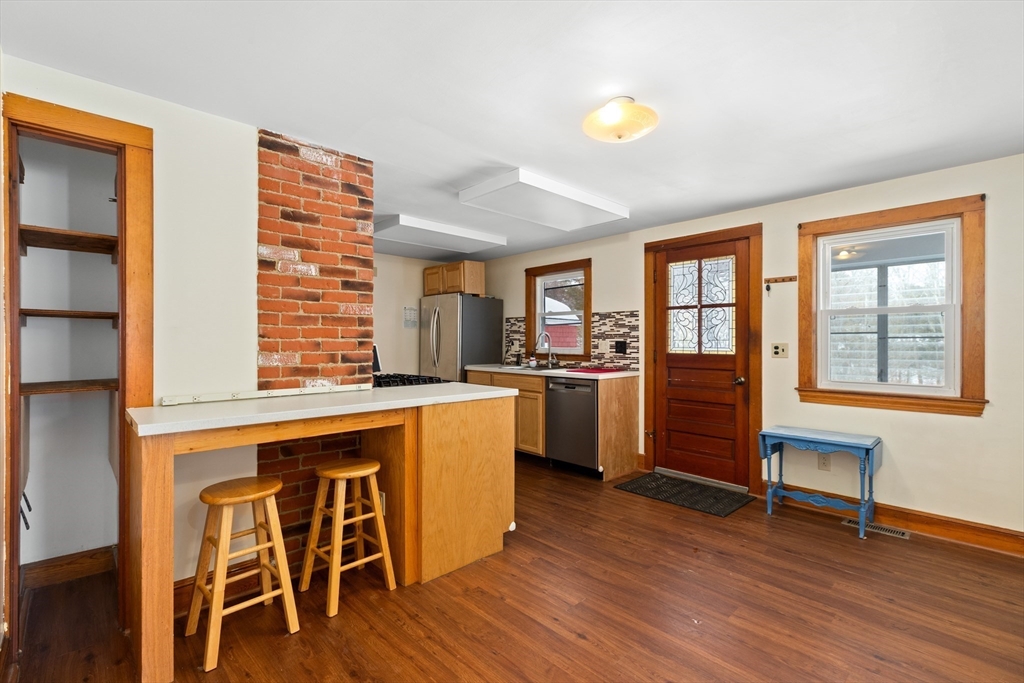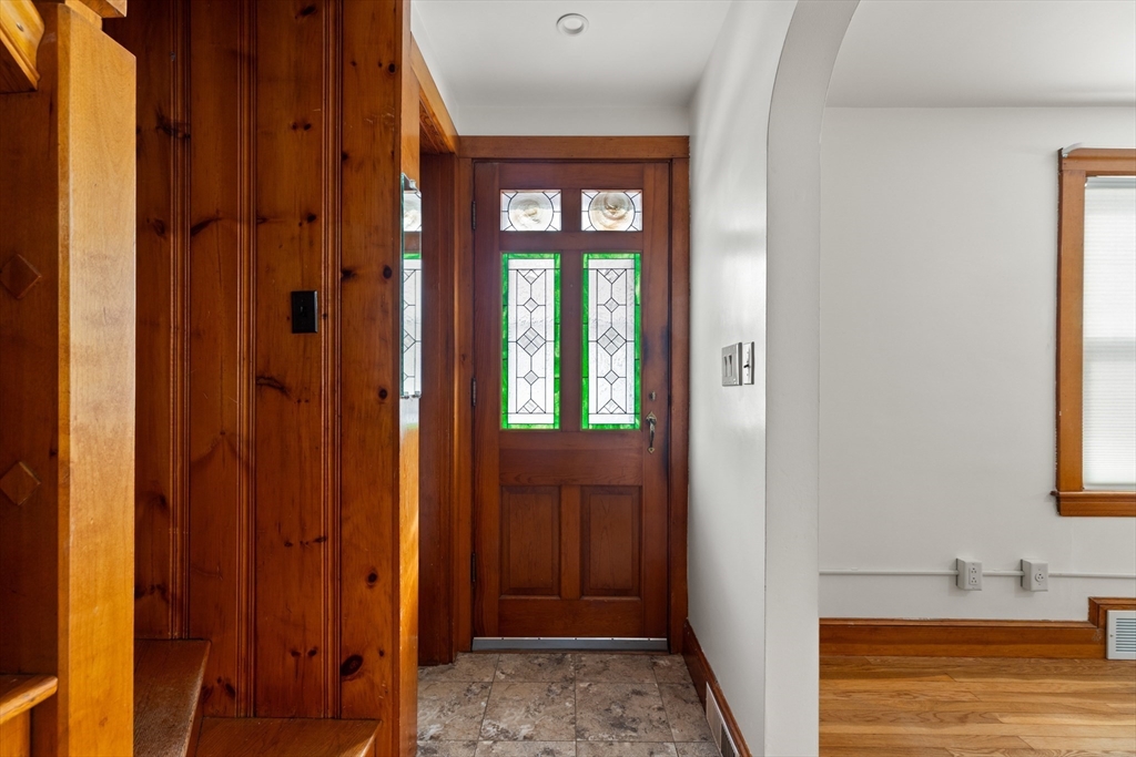 Welcome to 620 Farm Rd, a charming 4-bedroom Cape that blends timeless character with smart updates. Energy-saving solar panels and new energy-efficient windows provide comfort and efficiency, while original stained glass, beautiful woodwork, and classic glass door knobs preserve the home’s unique appeal. The large eat-in kitchen offers a pantry and flexible layout ideal for everyday living. Hardwood floors run throughout much of the home, complemented by a freshly painted interior filled with natural light. The first floor includes flexible bedroom options plus an office or den, while additional bedrooms are located upstairs. Enjoy a screened porch overlooking the private backyard with patio—perfect for relaxing or entertaining. A high-ceiling basement offers great potential for future use. Conveniently located near shops, amenities, and commuting routes, this warm and inviting home is a true standout.