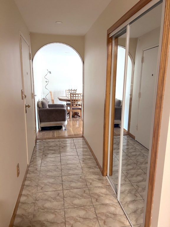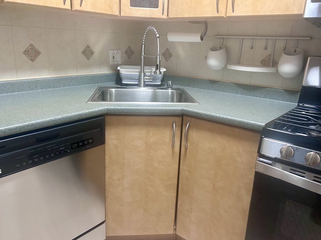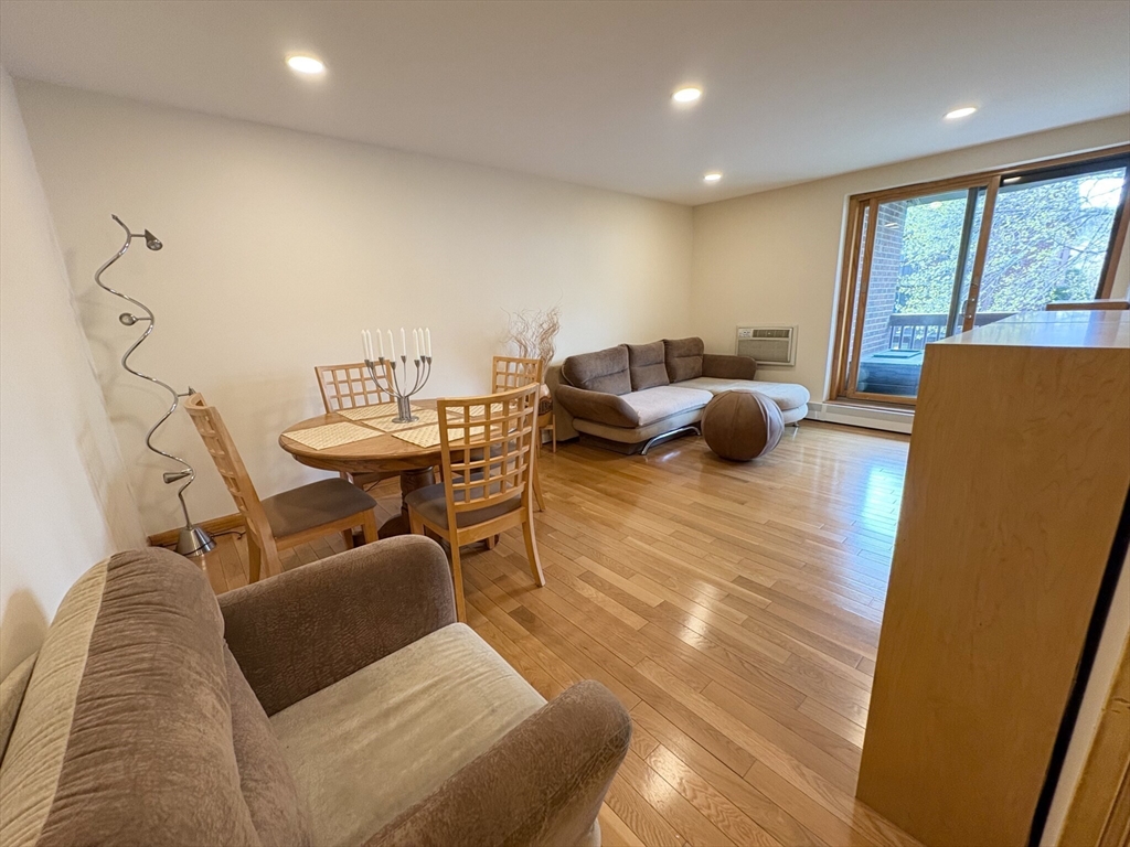 Gorgeous sun-splashed furnished 1-bedroom condo at Chandler Pond in Brighton. Features a modern kitchen and bath with stainless steel appliances, gas range, dishwasher and built-in microwave. Enjoy a private oversized covered balcony (loggia) accessible from both the living room and bedroom through sliding glass doors - perfect for morning coffee or evening relaxation. Living room and full kitchen come furnished - just bring your essentials! Built-in wall A/C. Heat and hot water included (tenant pays electricity). Gas heat via hot water baseboard. One deeded off-street parking space. In-ground pool, laundry in building, and beautifully maintained grounds with snow removal and landscaping included. Convenient to Boston College, Green Line, parks, public golf course, shops, restaurants, major commuter routes & more! No pets permitted.