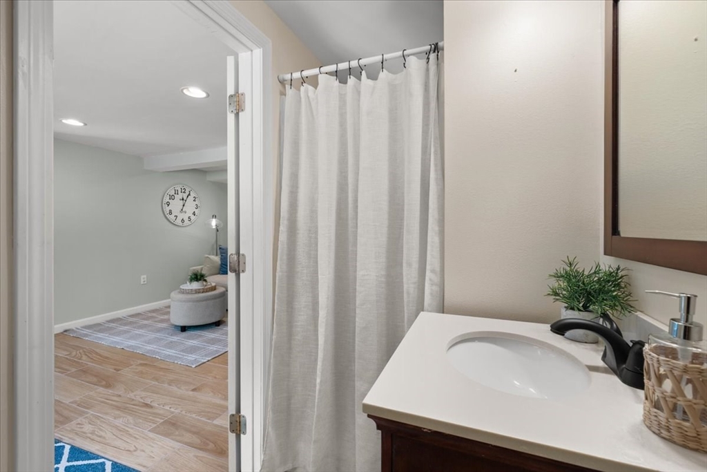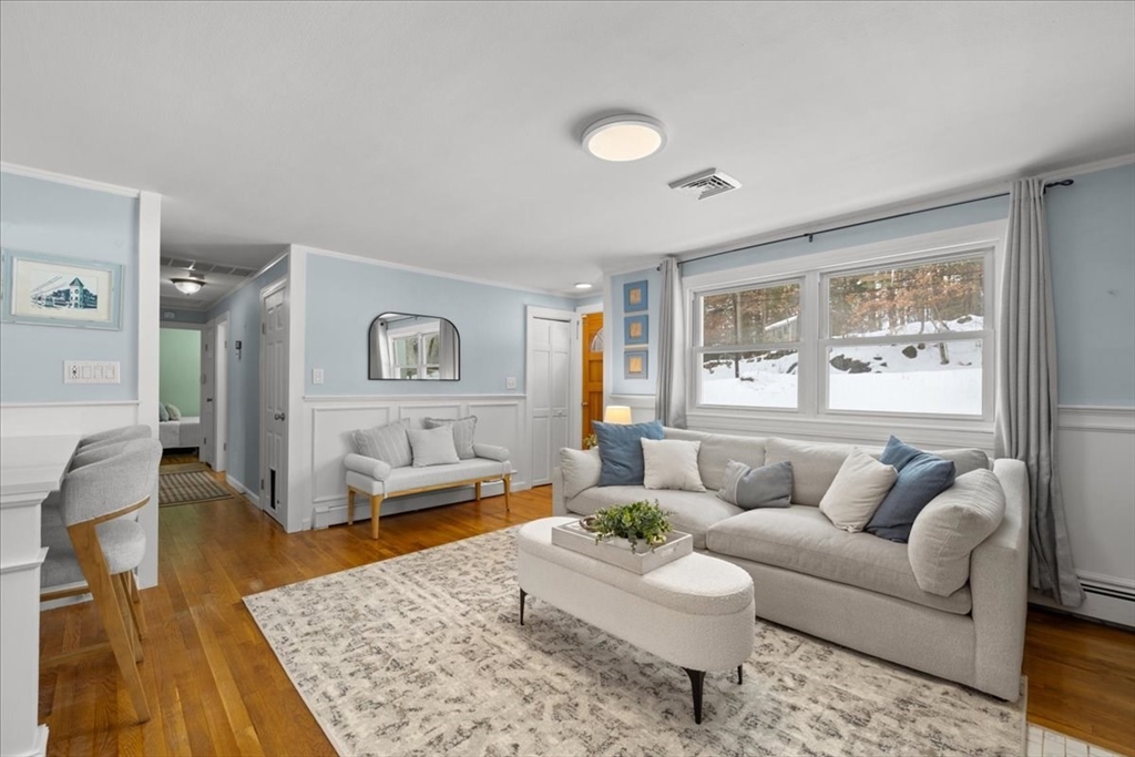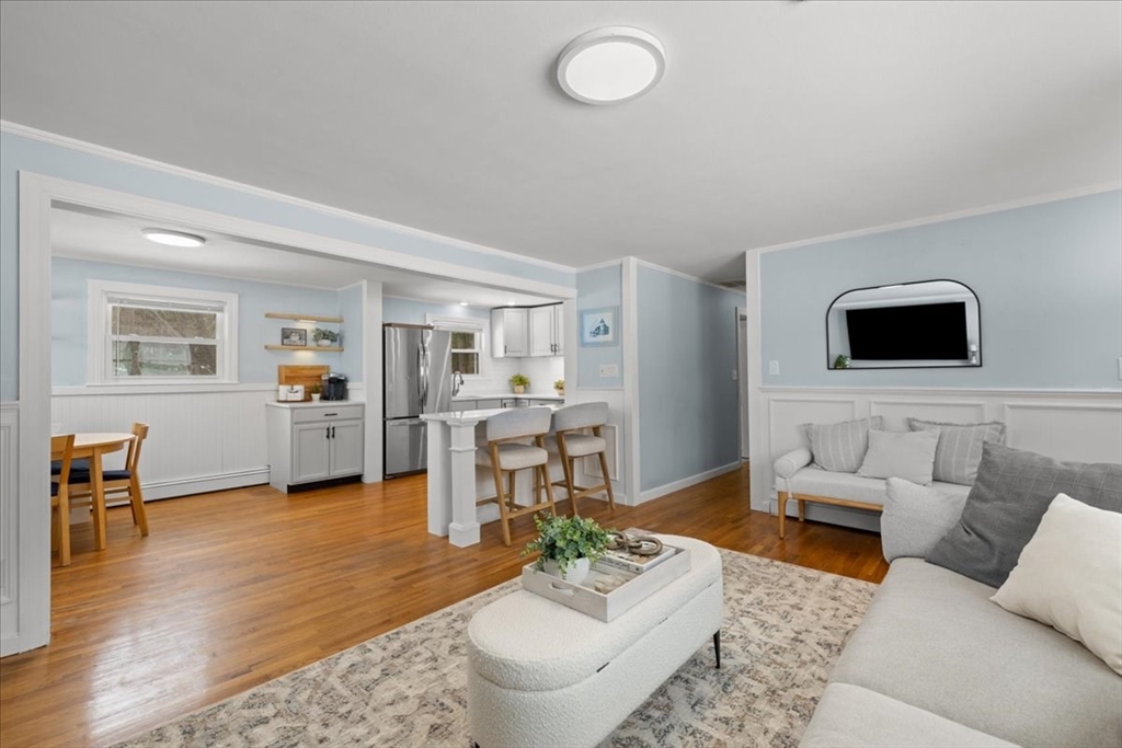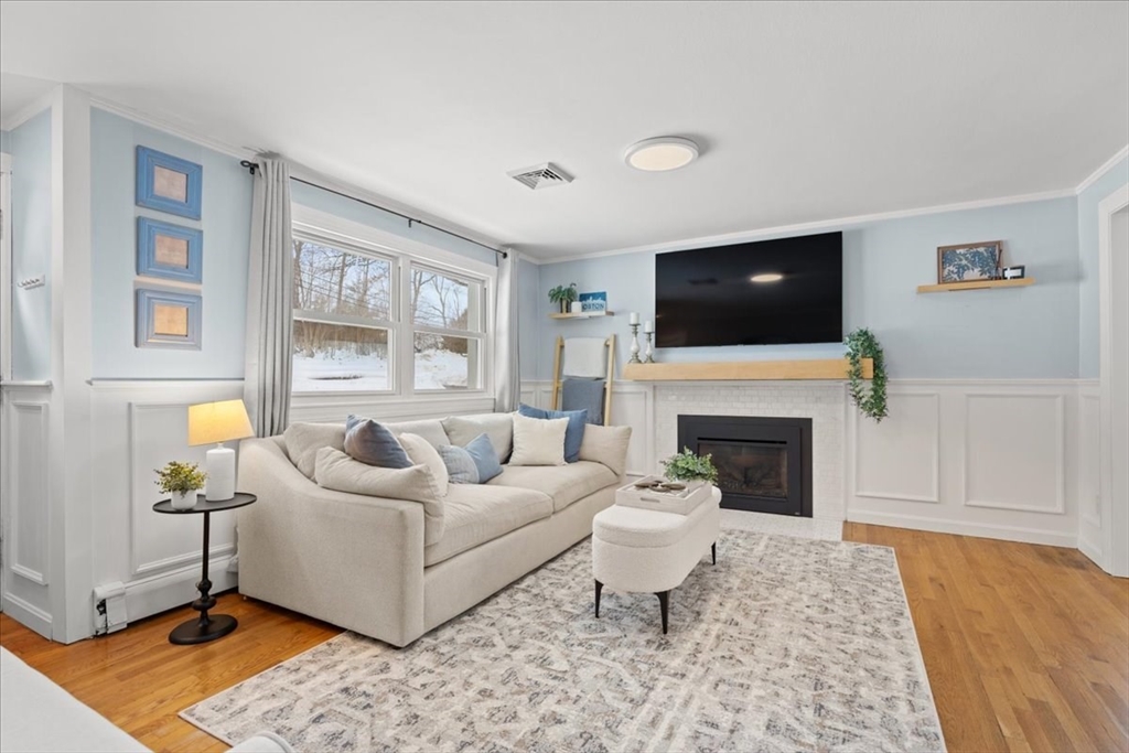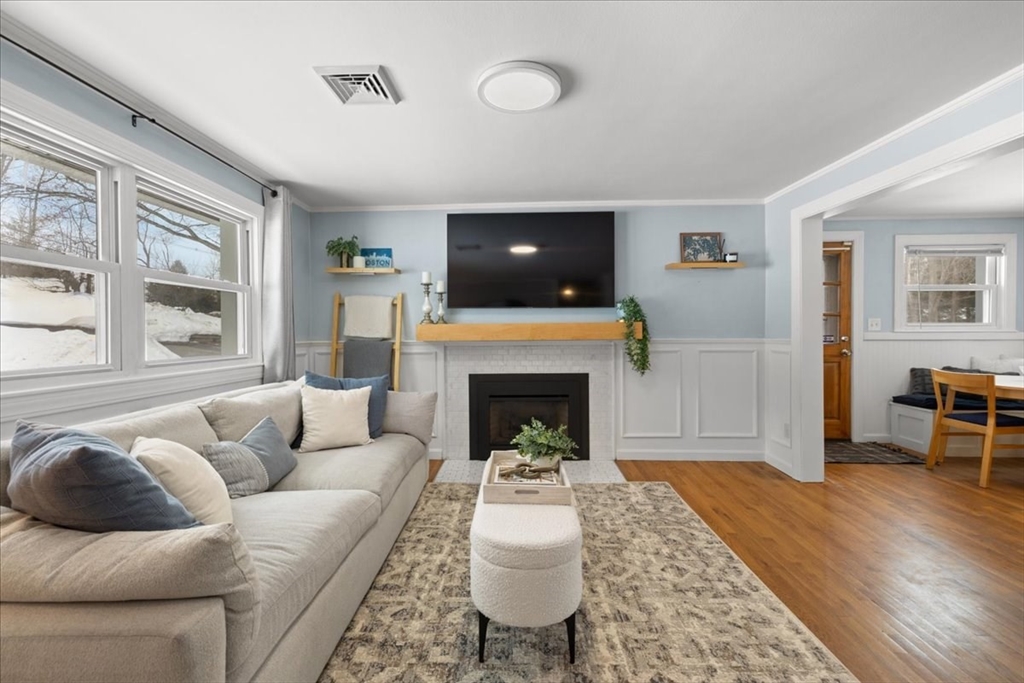 Updated and move-in ready, this 3-bedroom ranch offers flexible living space and a bright, open floor plan. The main level features hardwood floors throughout, a sun-filled living area complete w/updated gas fireplace & custom maple mantel, and an updated kitchen with quartz countertops, a banquet seating area & breakfast bar, perfect for everyday living and entertaining. There are also 3 bedrooms and a full bath w/double vanity on the main level. The finished lower level provides exceptional versatility with three additional rooms ideal for a home office, gym, playroom, media space, or guest area, plus a ¾ bath. Enjoy relaxed outdoor living with a deck & patio overlooking the fenced-in backyard, complete with storage under the patio and a storage shed. This is a wonderful opportunity for one-level living with bonus space below in a desirable Holliston location. Welcome home!