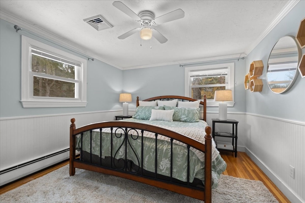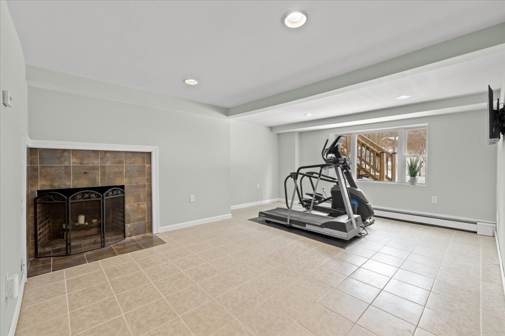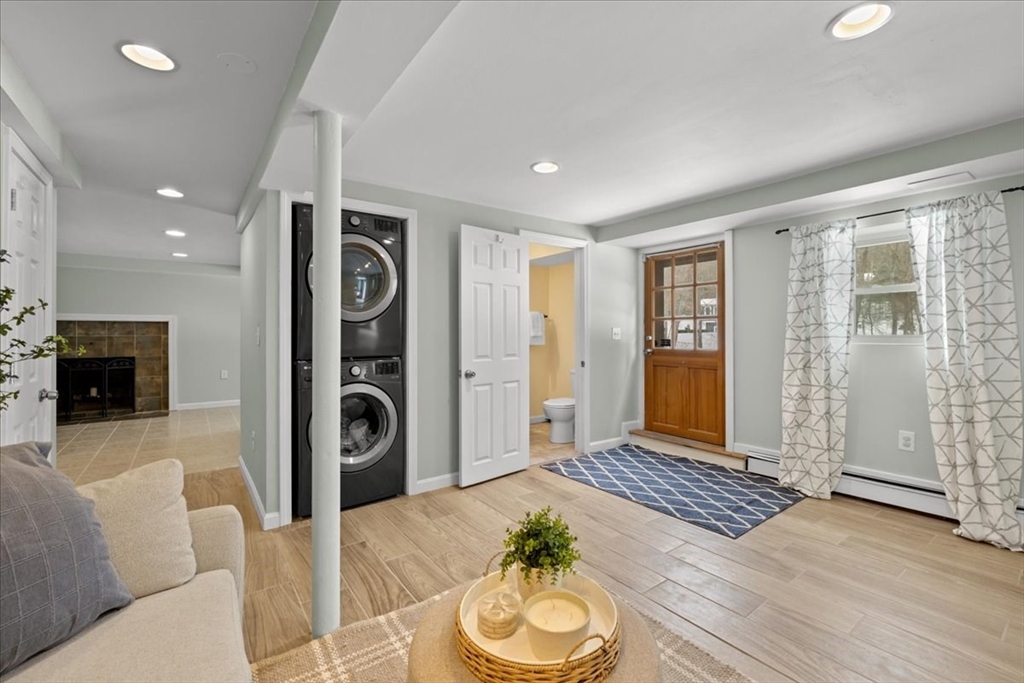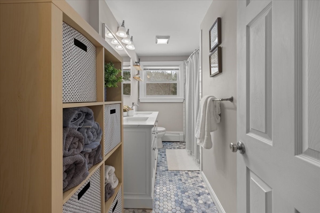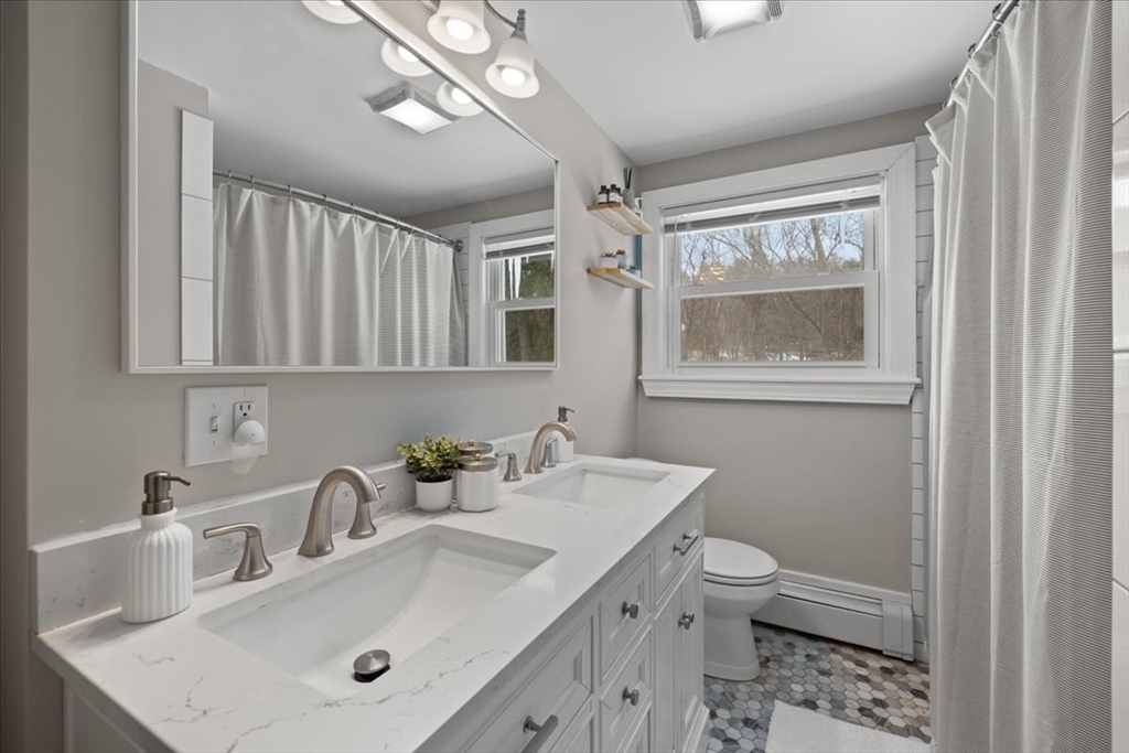 Updated and move-in ready, this 3-bedroom ranch offers flexible living space and a bright, open floor plan. The main level features hardwood floors throughout, a sun-filled living area complete w/updated gas fireplace & custom maple mantel, and an updated kitchen with quartz countertops, a banquet seating area & breakfast bar, perfect for everyday living and entertaining. There are also 3 bedrooms and a full bath w/double vanity on the main level. The finished lower level provides exceptional versatility with three additional rooms ideal for a home office, gym, playroom, media space, or guest area, plus a ¾ bath. Enjoy relaxed outdoor living with a deck & patio overlooking the fenced-in backyard, complete with storage under the patio and a storage shed. This is a wonderful opportunity for one-level living with bonus space below in a desirable Holliston location. Welcome home!