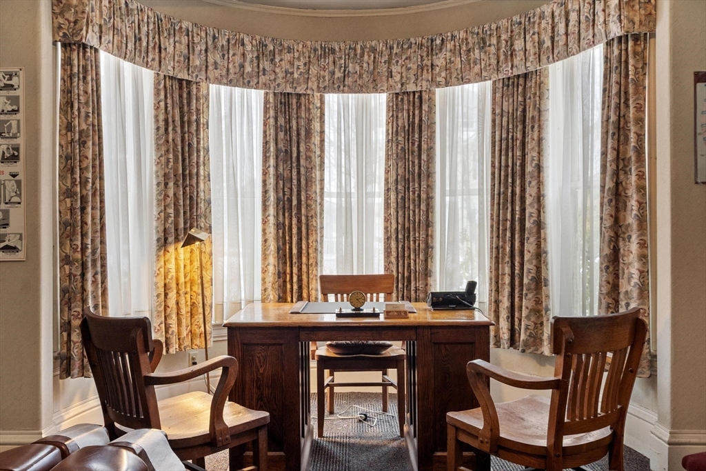 A rare opportunity to own one of the town’s most stunning Victorian homes rich in history, character & versatility. Blends timeless elegance w/ unique functionality, as it is currently both beautiful residence & professional office.The moment you enter grand foyer, you’ll be captivated by the exquisite original staircase.Impressive beamed ceilings, crystal lighting, three elegant fireplace mantels, & light-filled rooms showcase the home’s historic charm & craftsmanship. Every room is generously sized & offers flexible use to suit your needs.The finished third floor provides perfect space for a private retreat, man cave, playroom, or additional living area. The layout also includes a dedicated office section w/ patient rooms & waiting area ideal for continuing professional use or easily converting back to full residential living.Outside, the beautifully landscaped grounds enhance the home’s curb appeal. Ample parking,newer roof.A treasure.
