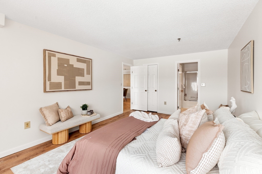 Enjoy the good life at the highly sought after Mystic River Park Condominiums! This lovely 6th floor TWO BED/TWO BATH bedroom CORNER unit has Boston skyline views from EVERY room & a private balcony for those summer nights. Enjoy a spacious primary bedroom with ensuite & 2nd bedroom with double closets! Freshly painted throughout, new vinyl flooring in primary bedroom & kitchen, newly refinished wood floors, & new stainless appliances add to the open & airy feel of this beauty! Central air, in-unit laundry area, storage, one garage space (#31) AND one outdoor parking space (#121)! Prime location with impressive amenities such as a heated indoor pool, fitness center, sauna, racquetball & tennis courts, 24/7 security & concierge desk, elevator service, community room. An ideal commuter location is just minutes to Boston, Logan Airport, & major Routes including Route 1 & 93. Close to Wellington Station, Assembly Row, Station Landing, Encore Casino, Tufts University, walking trails & more!