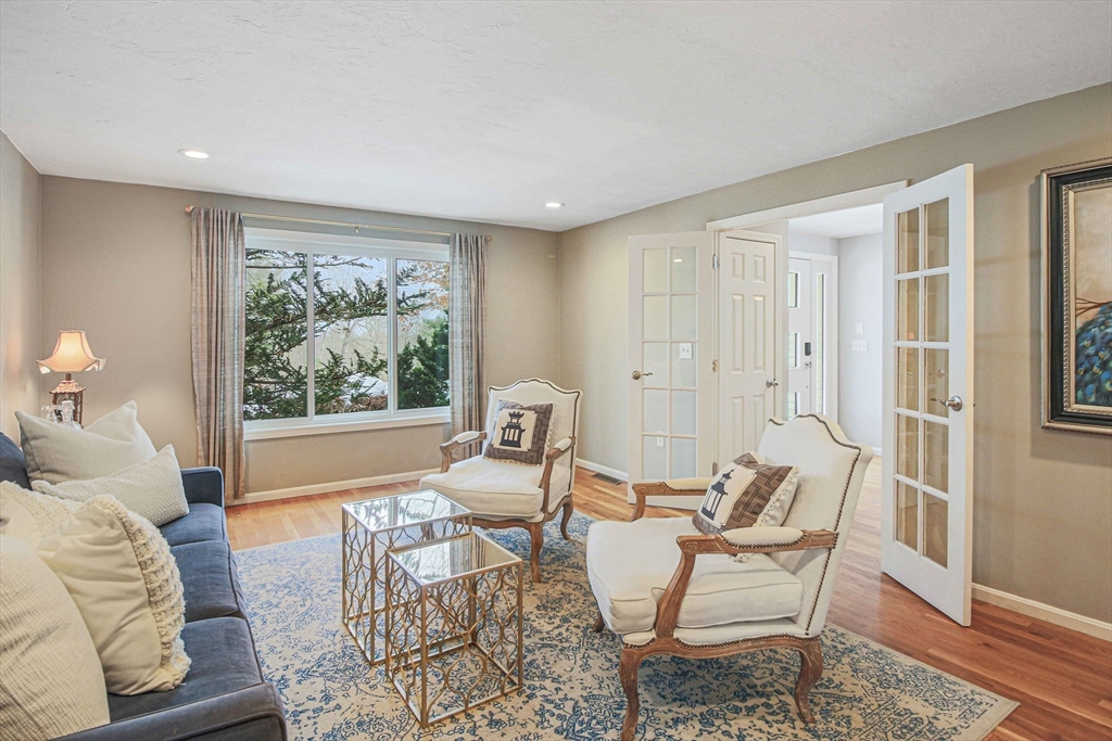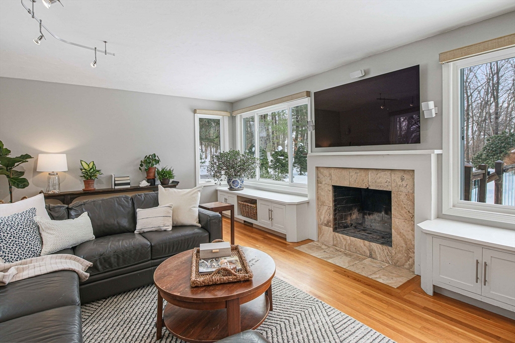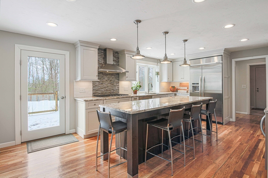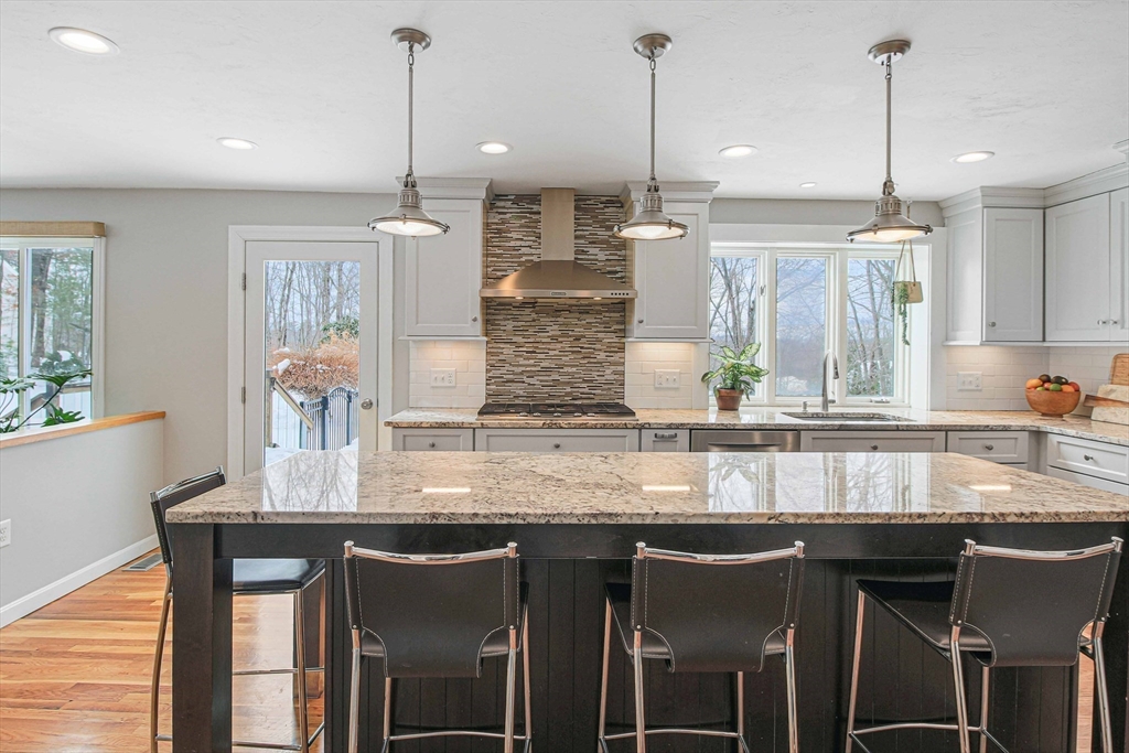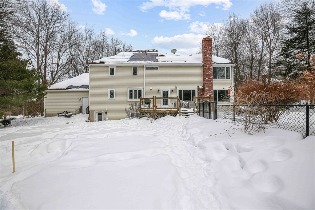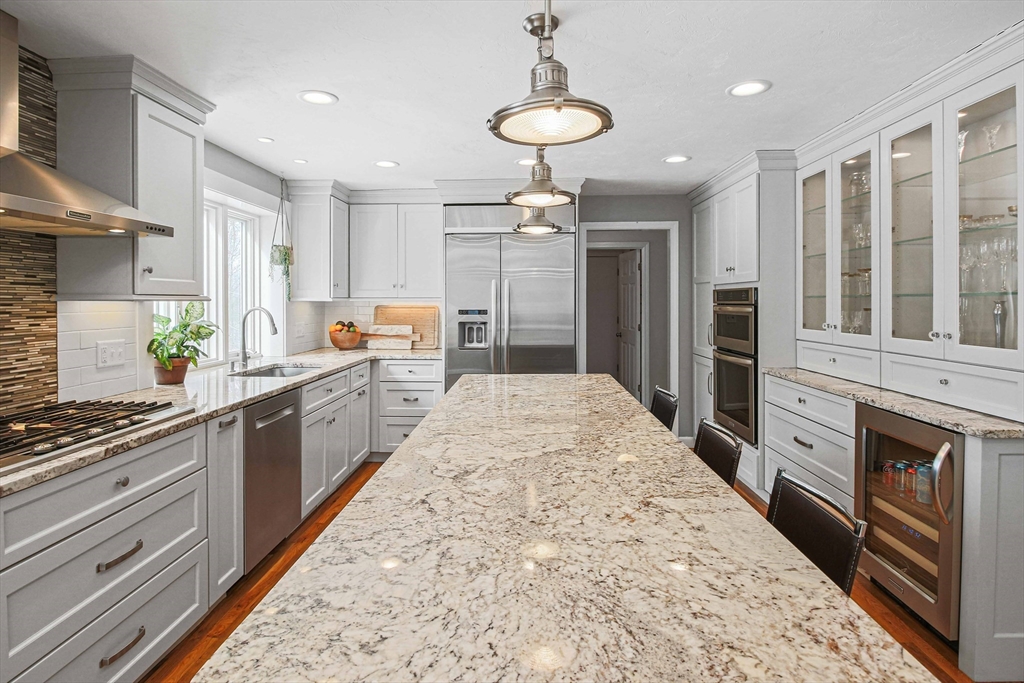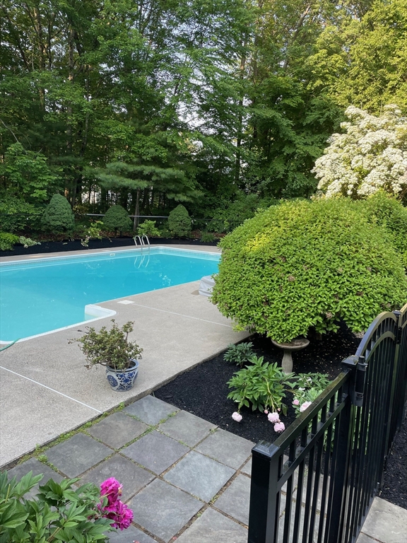 Simply beautiful inside & out, this updated colonial home sits on an acre+ cul-de-sac lot in wonderful nbhd.Three levels of living offering hardwood flrs thruout the 1st & 2nd flrs, stunning chef's dream kitchen with 8.5' island, spacious living & dining rooms & step-down family room with tile-surround fireplace & built-ins. Mud room with laundry & built-in storage & half bath complete the first flr. Upstairs the primary suite is huge with walk-in closet & sumptuous en-suite bath with soaking tub, tiled & glass-surround shower & oversized vanity.The 3 guest BRS are all generous in size with large closets & the main bath has been recently updated with double vanity & tile surround tub.The finished lower level is a versatile space & perfect for in-home gym, game/media room & still has plenty of storage space. All this on a gorgeous lot with circular drive, wonderful perennials, oversized deck, garden area & fabulous separately-fenced inground pool.This is the one you've been waiting for!