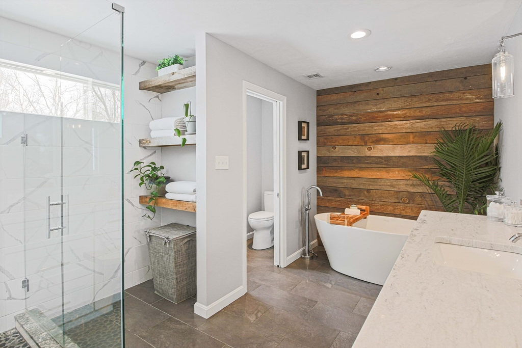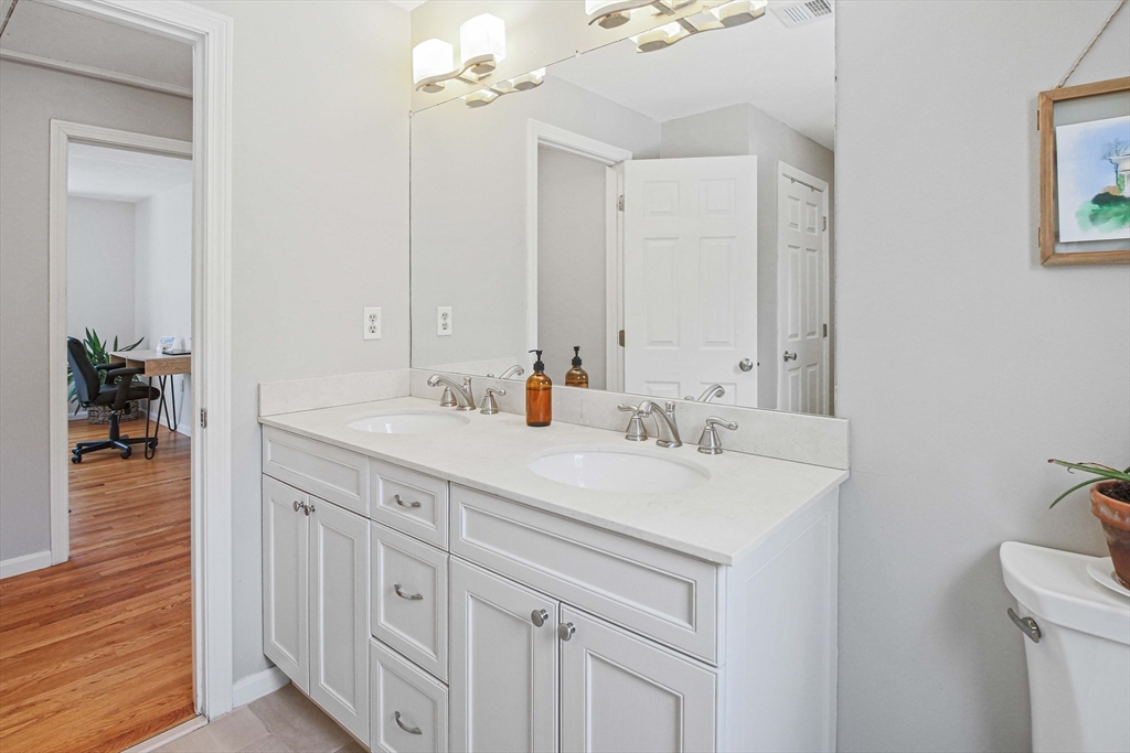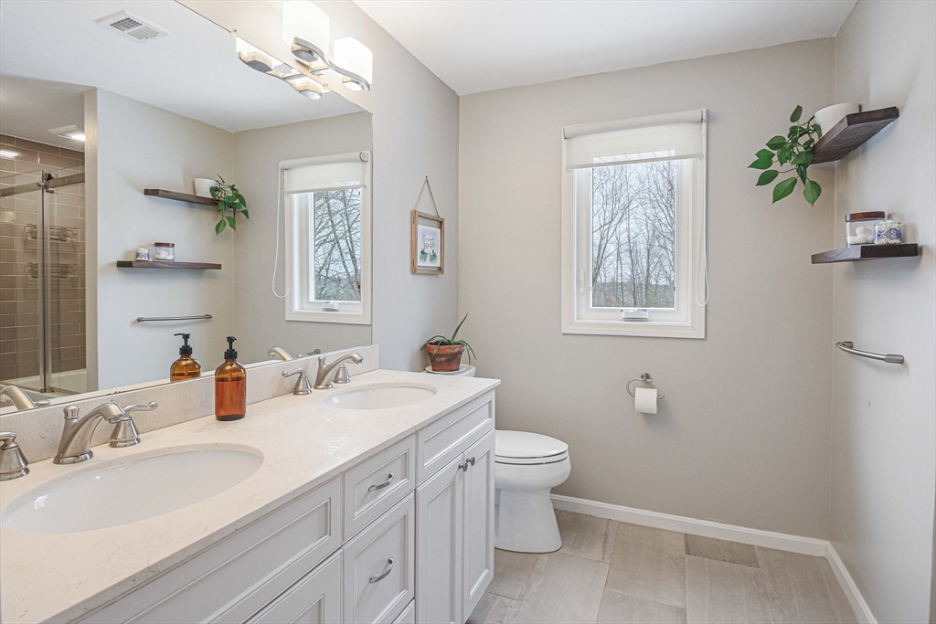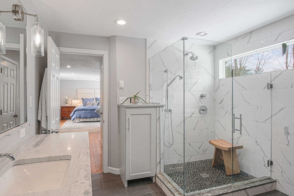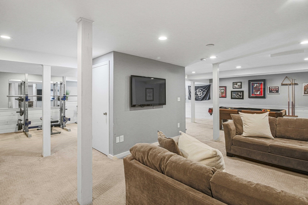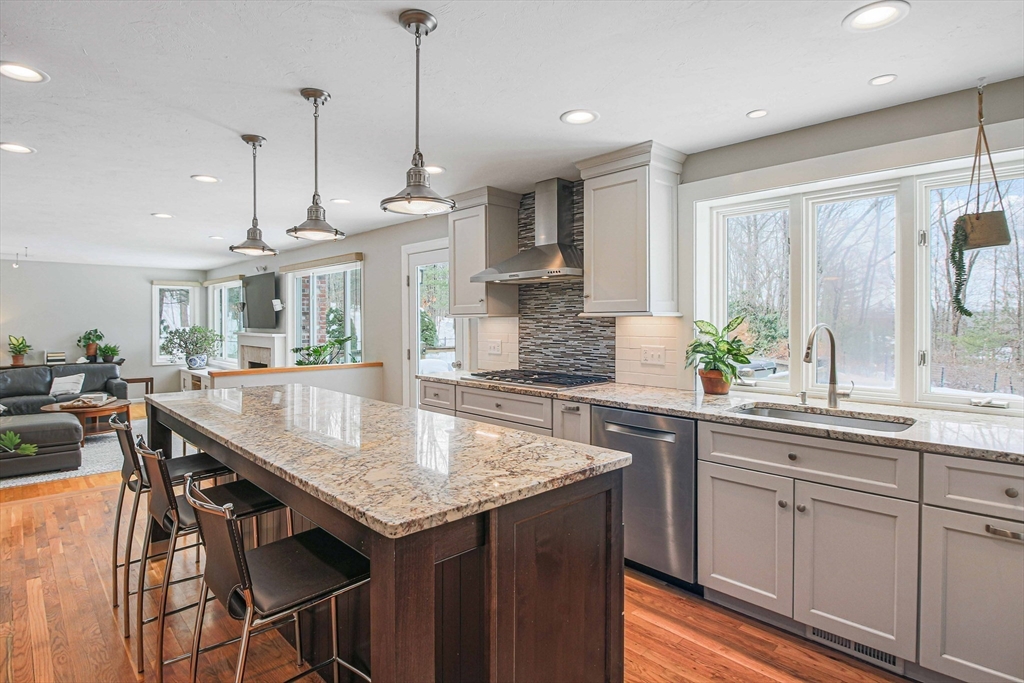 Simply beautiful inside & out, this updated colonial home sits on an acre+ cul-de-sac lot in wonderful nbhd.Three levels of living offering hardwood flrs thruout the 1st & 2nd flrs, stunning chef's dream kitchen with 8.5' island, spacious living & dining rooms & step-down family room with tile-surround fireplace & built-ins. Mud room with laundry & built-in storage & half bath complete the first flr. Upstairs the primary suite is huge with walk-in closet & sumptuous en-suite bath with soaking tub, tiled & glass-surround shower & oversized vanity.The 3 guest BRS are all generous in size with large closets & the main bath has been recently updated with double vanity & tile surround tub.The finished lower level is a versatile space & perfect for in-home gym, game/media room & still has plenty of storage space. All this on a gorgeous lot with circular drive, wonderful perennials, oversized deck, garden area & fabulous separately-fenced inground pool.This is the one you've been waiting for!