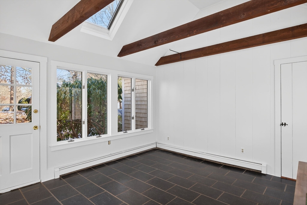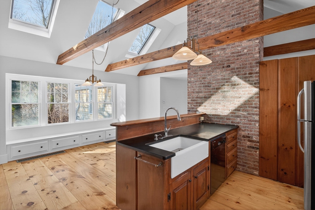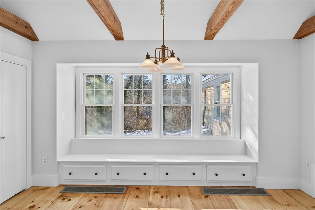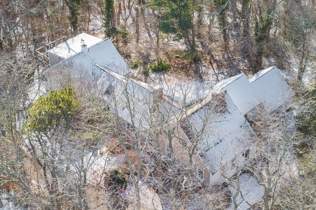Set at the peaceful end of a cul-de-sac and bordered by 10 acres of conservation land, this Cape Cod retreat offers rare privacy and serenity, with Pleasant Bay just around the corner. The main home features three bedrooms and two and a half baths, with a vaulted kitchen and dining area, den with gas stove, living room with Rumford fireplace, vaulted sitting room opening to the patio, first-floor bedroom suite, office, and powder room. Upstairs, two additional bedrooms share a full bath. An apartment above the garage adds a fourth bedroom and bath—ideal for guests or flexible living. Recent updates include soft-washed roof and siding, fresh interior and exterior paint, and refinished wood floors. A lovely home in an exceptional setting. (Agent/Owner)