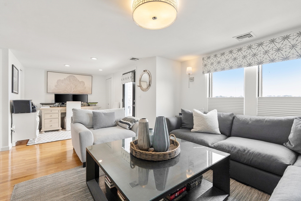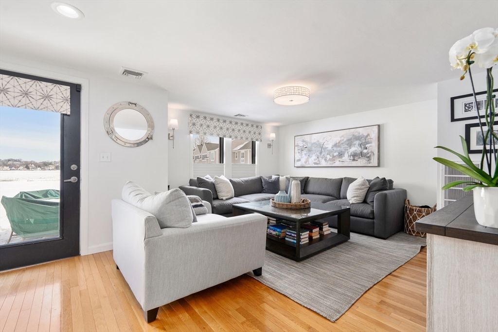Located in vibrant Marina Bay convenient access to Boston this exceptional waterfront townhouse offers refined coastal living with breathtaking water views and sophisticated modern finishes throughout. Featuring three bedrooms and three beautifully renovated bathrooms including a spa like primary suite with soaking tub and custom shower this home blends style and comfort seamlessly. The chefs kitchen offers custom cabinetry a large island with quartz countertops and high end stainless steel appliances open to dining and living areas ideal for everyday living and entertaining. Glass and Chrome finish railings hardwood floors designer details custom closets and ample storage enhance the home. Enjoy private balconies deck garage parking seasonal pool gym ferry to Boston marina shops and restaurants truly waterfront living at its finest.