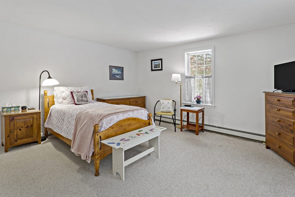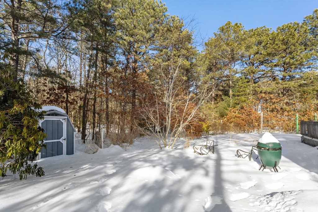 Maintained, one-owner, light-filled, Contemporary, 3 bedroom, 2 bath Ranch style home with open floor plan. Hardwood floors, vaulted ceiling, skylight and ceiling fans greet you upon entering the Foyer of this property. Enjoy sitting next to the cozy gas fireplace on cold, wintery nights and during warmer weather relax or grill on the outside deck and explore the paths of Quashnet Woods State Reservation and Wildlife Management conservation land which backs up to the neighborhood of Old Colony Estates. Master Bedroom ensuite, laundry, storage, stairs to full, unfinished basement and access to attached one-car garage are located to the left of the main area and two bedrooms and a full bath are located to the right of the main area. This home is centrally located to South Cape Beach, Mashpee Commons for dining, shopping, and entertainment, and to the villages of Falmouth and Hyannis. Truly a Valentine gem for you and your loved one!