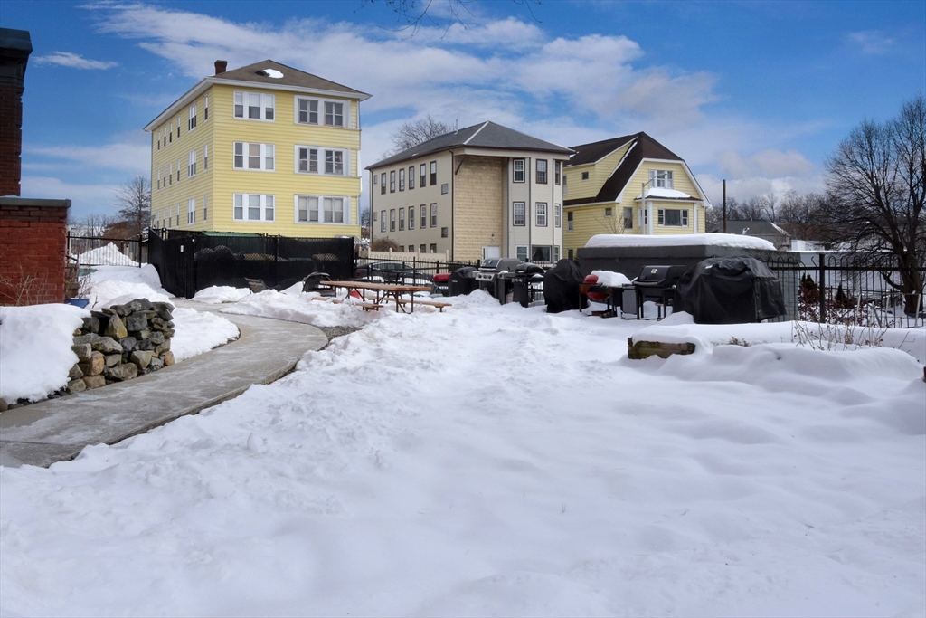 Bright and stylish School House Lofts condo offering over 800 square feet of open living space. Soaring 12-foot tin ceilings and oversized windows fill the home with natural light. The flexible floor plan includes a comfortable bedroom, dedicated office with a rolling ladder, and convenient in-unit laundry. Additional private storage is located on the lower level. Enjoy outdoor amenities including two deeded parking spaces, a fenced doggie area and a shared grilling patio. Ideally located near Shrewsbury Street’s popular restaurants, UMass Medical School, the commuter rail, and more—this loft blends character, comfort, and convenience.