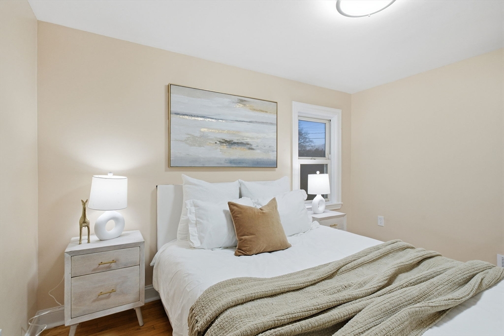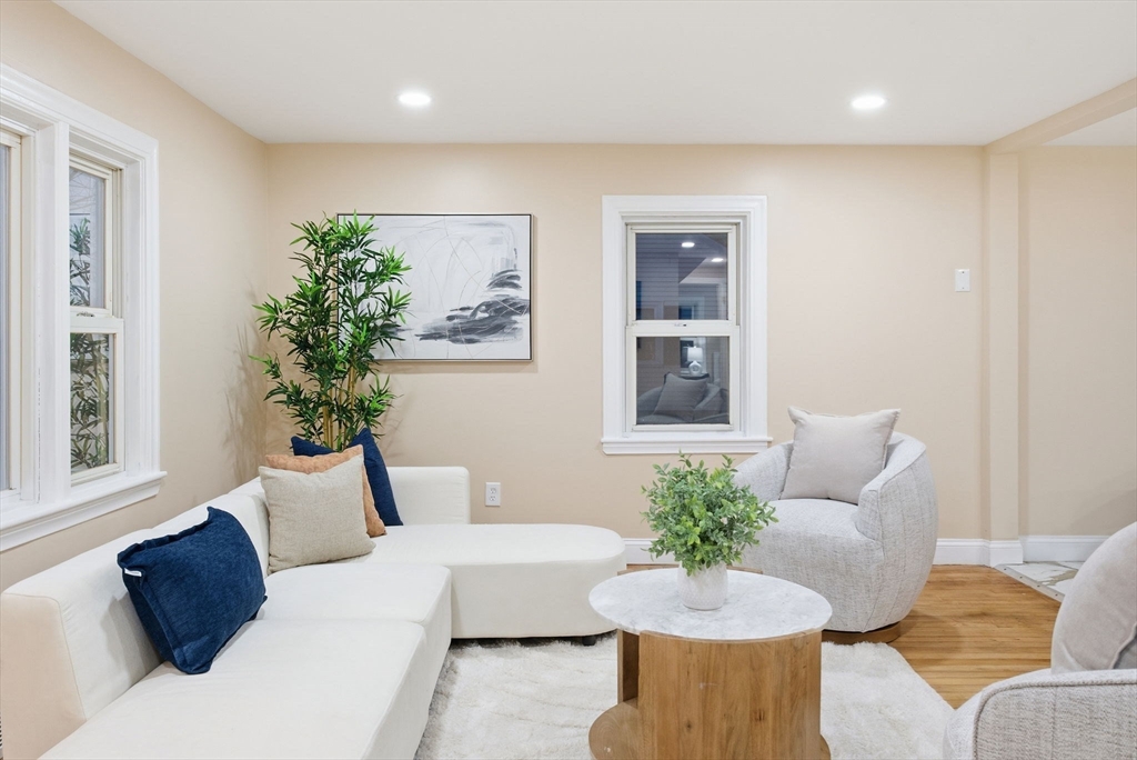 Totally renovated 4-bedroom, 2-bath Cape with two finished levels. The main floor features a bright living room, gleaming hardwood floors, and a stunning white kitchen with stainless steel appliances perfect for entertaining. Bedrooms on both levels and two full baths offer flexible living. Spacious driveway provides ample parking. Just move in and enjoy for you and yours. Property is virtually staged.