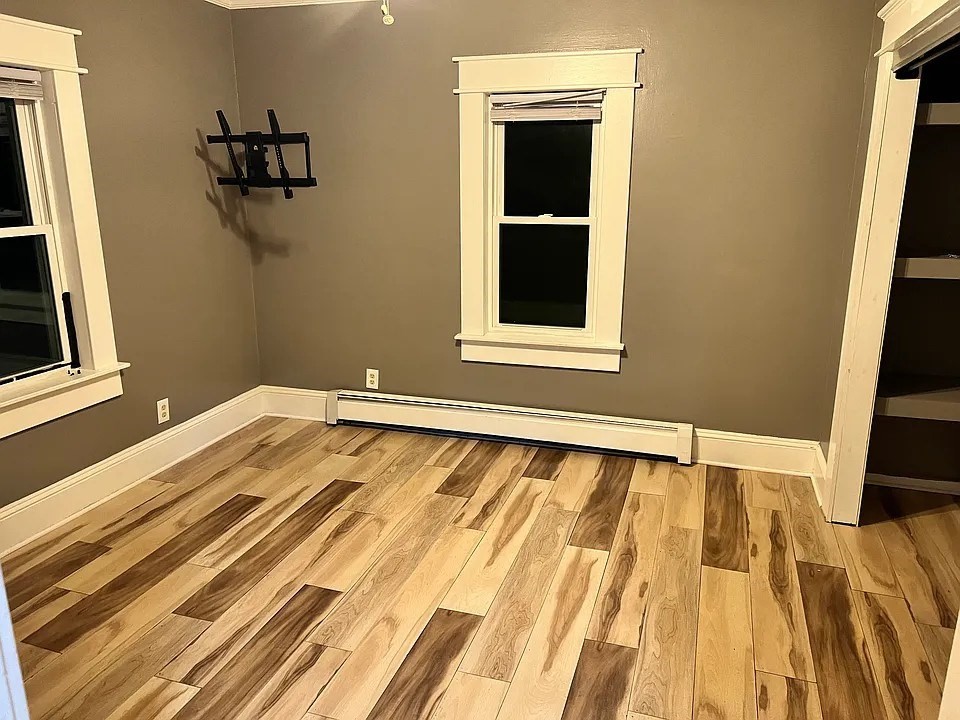 This 2nd floor unit has 4 bedrooms, 1 bath and many hardwood floors. The kitchen was recently upgraded with new cabinets and countertops. Off the kitchen, through French doors, is the cozy living room. With its walk-in closets, built-ins and beautifully finished attic space, this unit doesn’t need a thing! This unit has bright main living areas!