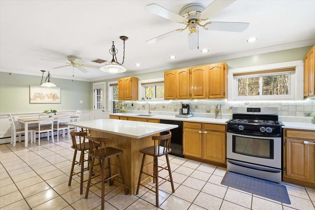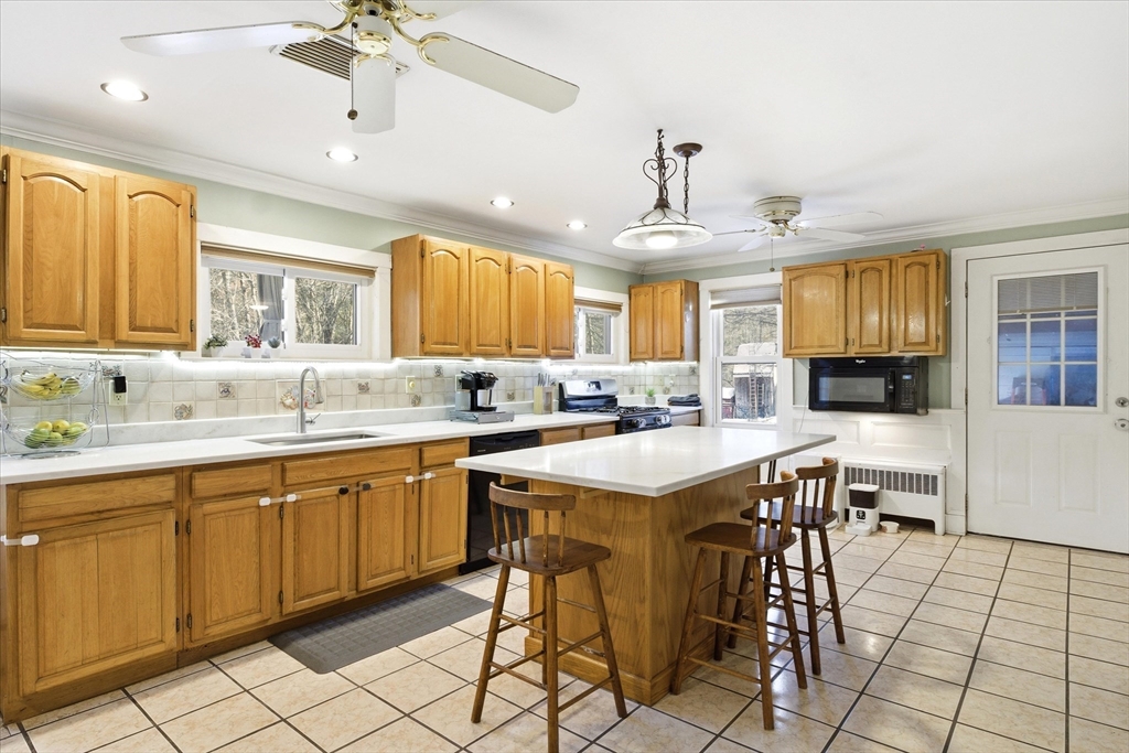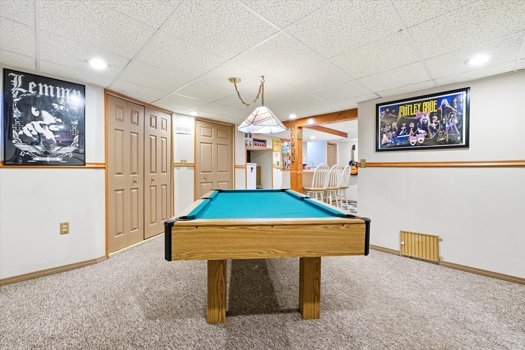This beautiful 3-bedroom, 4-bath home offers the perfect blend of comfort, space, and charm. Inside, the fully applianced kitchen serves as the true heart of the home, featuring a large quartz center island perfect for gathering with family and friends, whether you're hosting the holidays or enjoying a quiet morning coffee. The sun-drenched living room, highlighted by a cozy fireplace, creates a warm and inviting atmosphere year-round. Step outside onto the expansive deck overlooking a spacious yard and gardens, an ideal setting for summer barbecues or simply enjoying the beauty of nature. A two-car garage and walk-up attic provide ample storage. New solar panels/vinyl windows offer affordable energy. Lower level offers incredible versatility, complete with a wet bar, pool room, additional living room, office space, laundry room, and extra living and sleeping quarters with a full bath and private entrance, perfect for extended family, guests, or potential multi-generational living