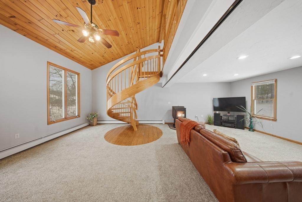 Multiple offers. Please submit your highest and best by 6:00 Sun 2/15.Wait till you see this amazing floor plan! Living room with bay window gives you lots of natural light. The eat-in kitchen is cabinet packed with a pantry. You can walk right out to your peaceful screened-in porch. There are two good size bedrooms and nicely updated full bathrooms. Walk down the hall to the magnificent primary bedroom with a spiral staircase leading to beautiful loft area. Soooo many possibilities! Basement has lots of storage and a finished room. Newer Roth oil tank, three car garage and a whole house generator. This home has a style all its own. Come and see for yourself!