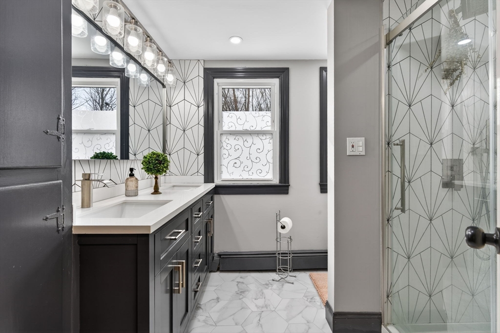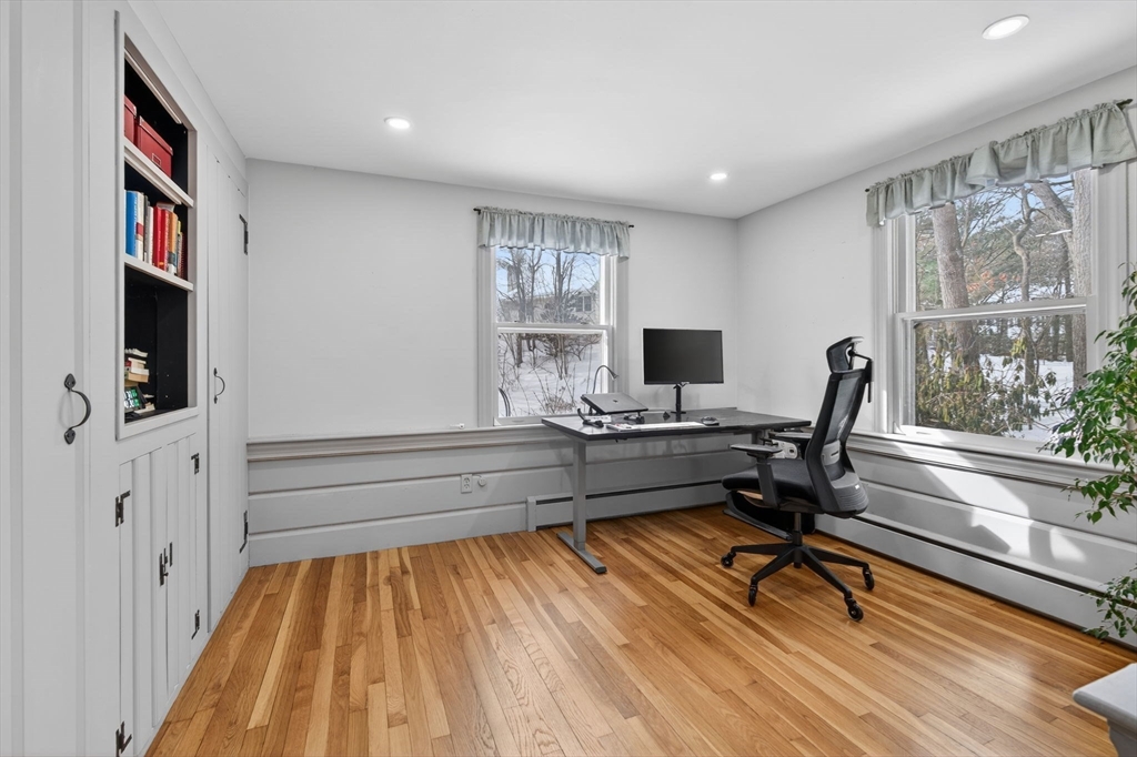 Charming updated 4 bedroom Cape with 3 full baths offering flexible living space and modern improvements throughout. Renovated kitchen with SS appliances and custom cabinetry and breakfast bar opens to a family room with fireplace, skylights and wet bar, with direct access to mud room and oversize rear deck overlooking private backyard. The main floor also features a spacious bedroom, full bath, home office, formal living room with fireplace and dining room. The finished lower level includes media room with fireplace, exercise room, playroom, full bath, laundry room and large walk-in pantry. Upstairs you’ll find three additional bedrooms which are nicely sized and with hardwood flooring plus an updated full bath. Newer mini-split cooling/heating heat pumps in bedrooms and family room. Updated electrical, newer hot water heater and convenient EcoPlus power bank for electric backup. Two car garage and shed. Convenient to West Elementary, middle and high school.