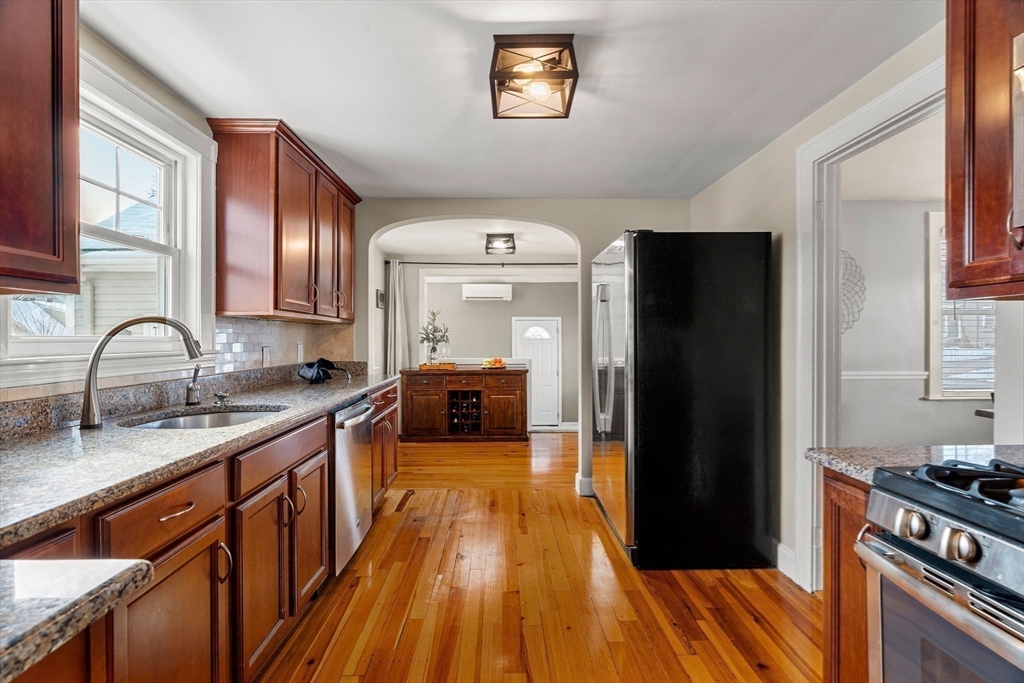 Rare rental opportunity in one of Wakefield’s most desirable neighborhoods! This beautifully maintained 3-bedroom, 2-bath Colonial offers space, style, and convenience. The kitchen showcases custom cherry cabinetry, granite countertops, and stainless steel appliances. A front-to-back living room with fireplace and a sunken family room with cathedral ceilings, skylights, and slider to the yard create inviting, light-filled living spaces. Hardwood floors and a formal dining room enhance the home’s timeless character. Three well-proportioned bedrooms and a finished lower level with bath provide flexible living options. The private, fenced backyard features an oversized patio and storage shed - perfect for outdoor entertaining. Ideally located within walking distance to Lake Quannapowitt, downtown Wakefield, schools, and the commuter rail, with easy access to Market Street, major routes, and Boston. Available March 15, 2026.