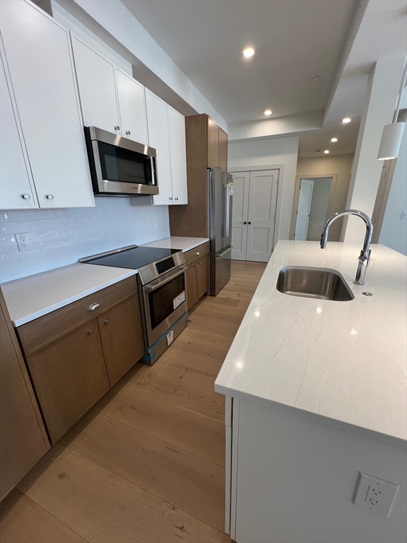 Available March 1st, this brand-new, beautiful, and spacious 2 bed/2 bath apartment offers modern living just minutes from Quincy Center and Wollaston Beach. The unit features gorgeous hardwood flooring, in-unit laundry, electric heating, a private balcony, and contemporary finishes throughout. Two parking spaces are included—one garage spot and one outdoor space. EV charging is available at the property. Small pets are welcome, and this newly built community provides easy access to shops, dining, public transit, and the beach.