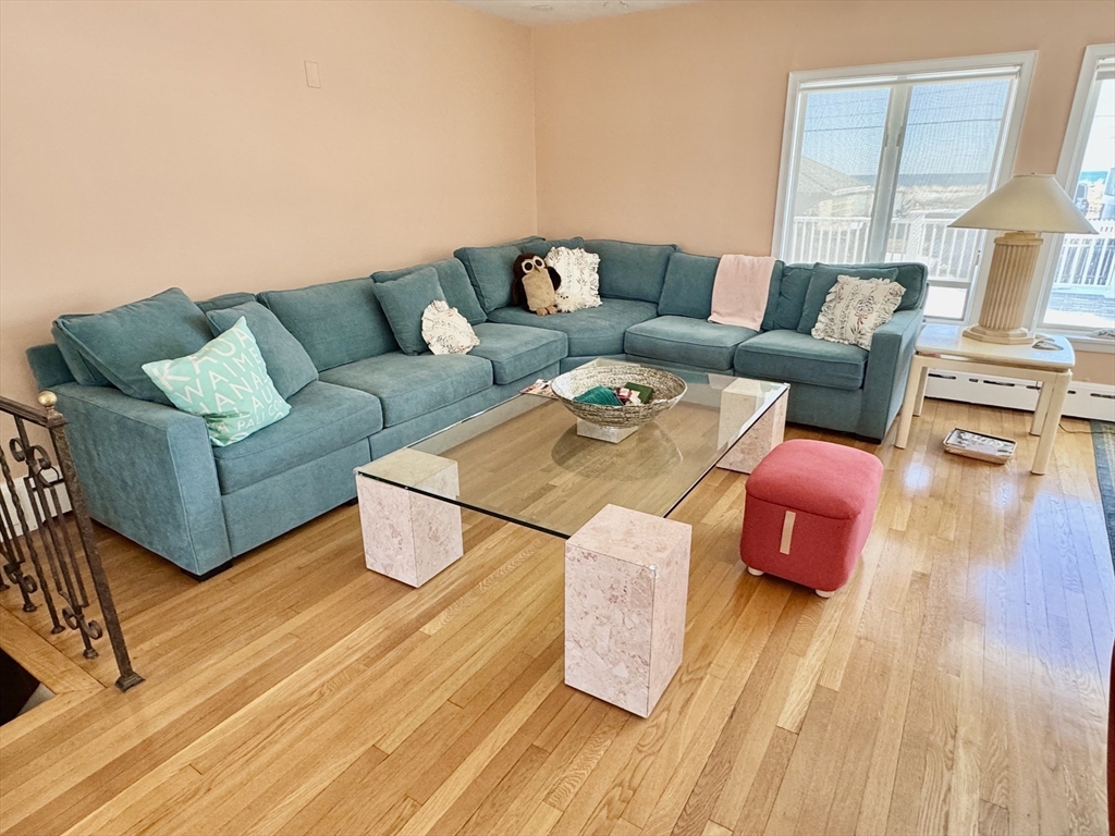 Beautiful ocean views from this (ONLY JULY) Furnished Summer Rental. This Contemporary Home has 3 Bedrooms, 3 Full Baths, a gorgeous quartz and stainless kitchen with breakfast bar, large living room dining room separated by a double fireplace, a primary bedroom suite one can wake up to the ocean, spacious man cave family room and sliders out to an enormous deck for relaxing, entertaining and ocean viewing. This property has a walkway to the beach! Come enjoy living in Hull for JULY with commuter boat & train to Boston minutes away.