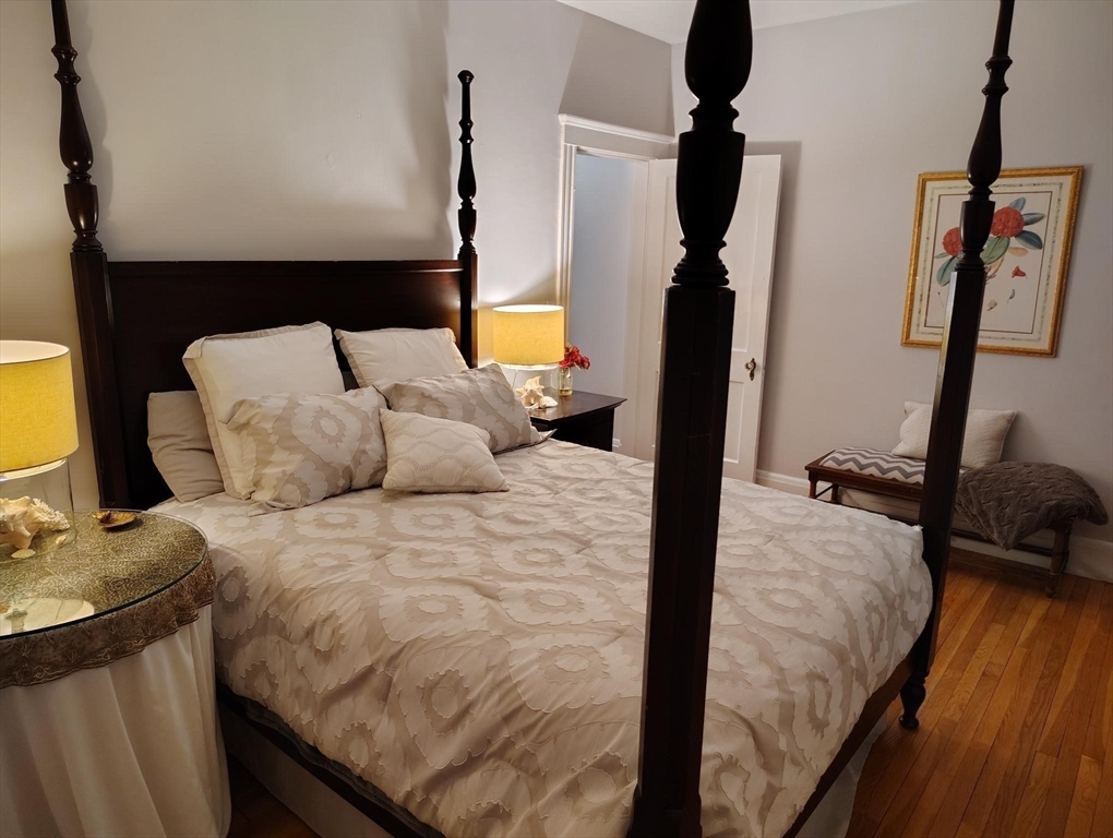 Unusually large furnished 2 bedroom/2 bath apartment in a beautifully maintained historic home, minutes from downtown Salem. As you approach this fine Queen Anne Victorian with its corner turret, you begin to appreciate that is not a standard rental apartment. The rooms are graciously scaled, with original detail and modern updates. The kitchen-family room is bathed in light with 7 windows and a sliding French door leading to deck, perfect for morning coffee! The apartment is nicely divided with living on one side and bedrooms with a full bath on the other, affording the bedrooms extra privacy. On the living side, a dining room and adjacent large living room with a charming 5 sided bay. These rooms are bathed in light...this is a sunny home! A half-bath adds convenience. Electricity, heat, & hot water are INCLUDED making this an excellent value! Tandem parking for 2 cars. Conveniently situated one block from Osgood Park (and the harbor!) and a few blocks from Forest River Park.