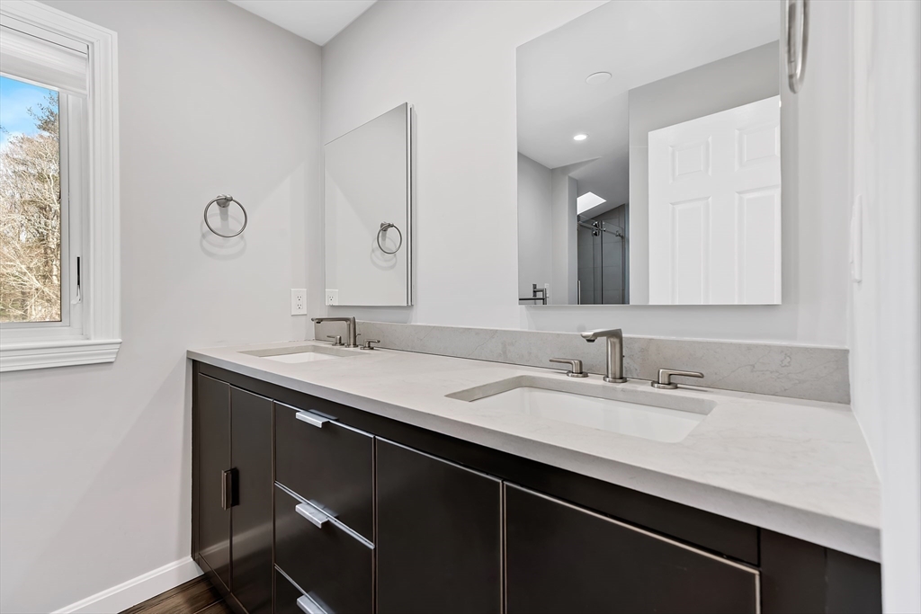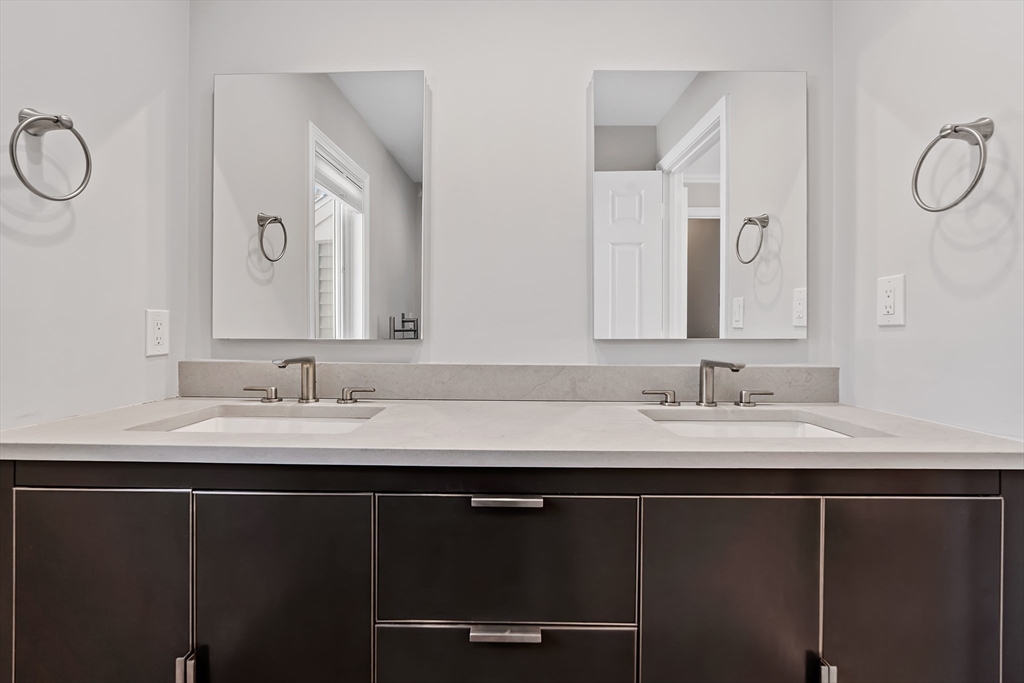 This beautifully maintained condo offers a perfect blend of comfort with loads of thoughtful updates. The expansive living and dining area is anchored by a fireplace for a warm and welcoming space for both everyday living and entertaining. The large, charming kitchen with great storage offers an dining area, breakfast bar and built in bookcases, blending functionality with character. Step outside to a lovely bluestone patio- perfect for summer entertaining. Second floor features two spacious bedrooms and two beautifully renovated bathrooms. This inviting unit also features a dedicated office with serene wooded views and a powder room on the first floor.Additional highlights include a 2-car garage and a finished room in the basement ideal for a home gym, media room or bonus living space. Enjoy one of the lower monthly condo fees around, a fabulous neighborhood pool, tennis/pickleball courts and walking trails all over. Tucked in the back of the community abutting Weston.