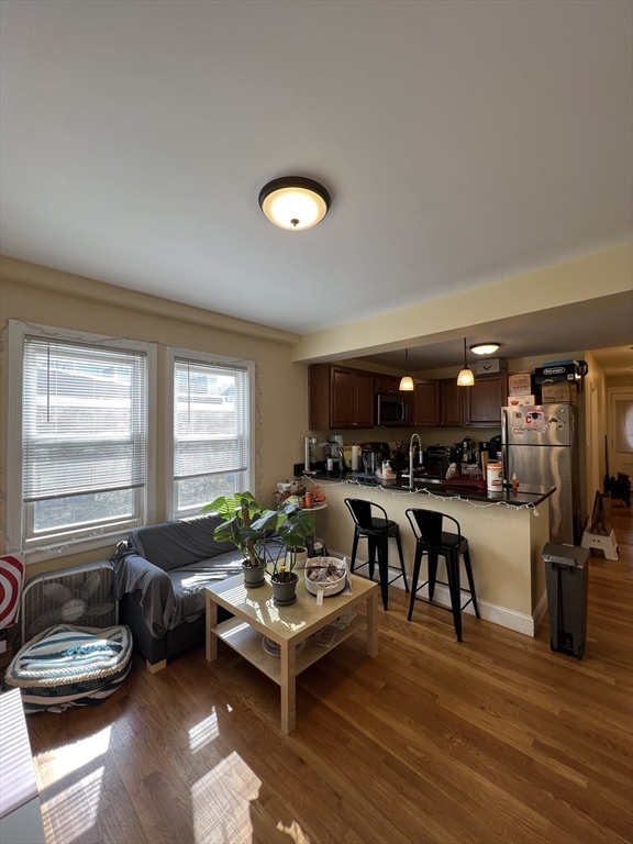 Porter Square. Closest train = Porter Square (Red Line T). · 3 bed/2 bath (first floor). · Hardwood floors. · Updated kitchen (cabinets, granite, stainless steel appliances). · Updated bathrooms. · Open living room/kitchen. · Central heat and ac. · Coin-op laundry machines in basement. · Front and back decks. · Backyard.