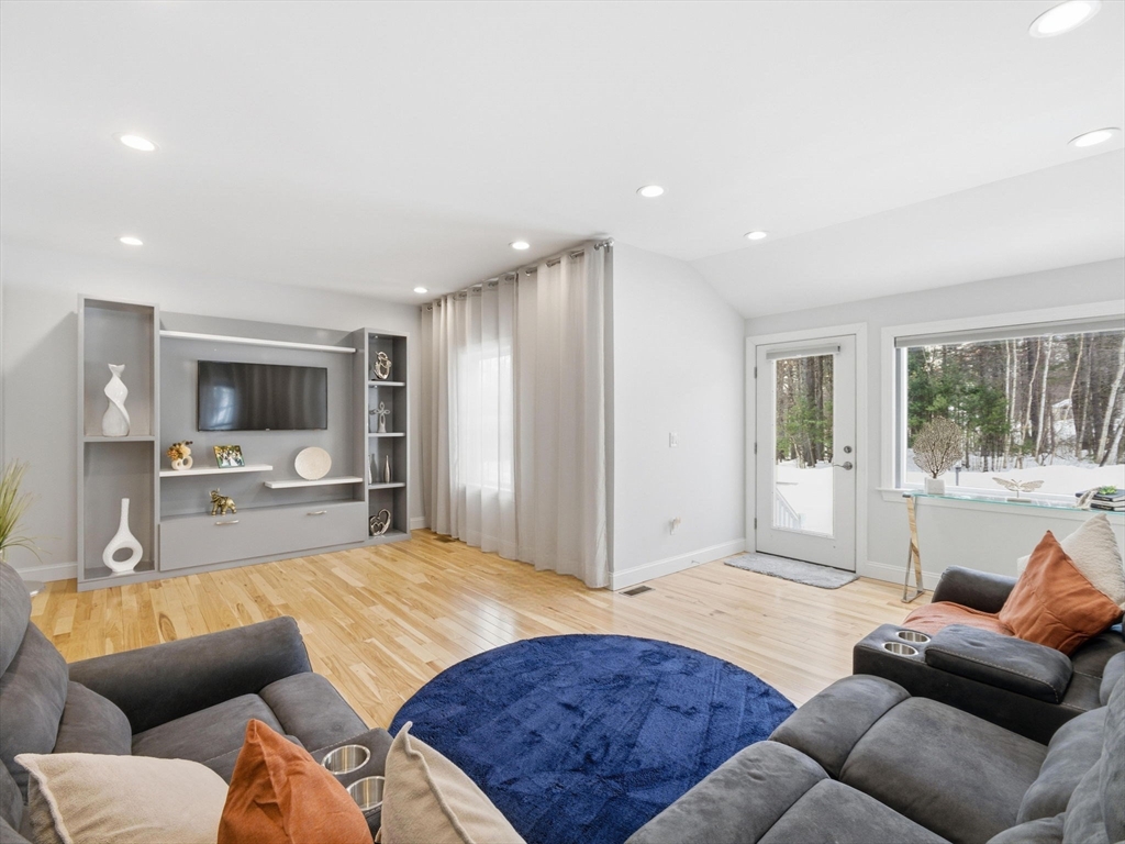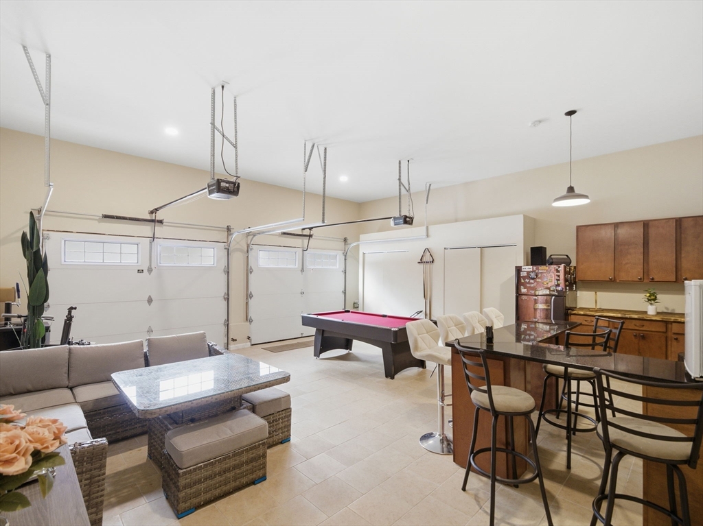 Welcome to this better than new condex in a quiet, desirable neighborhood. This thoughtfully designed home offers an open floor plan with hardwood floors throughout. The kitchen features stainless steel appliances, quartz countertops, and a breakfast bar that flows into the dining area with sliders to a private rear deck overlooking your yard perfect for entertaining or everyday living. The first floor also includes a sun filled living room, half bath with tile and quartz vanity, and a mudroom/laundry area with direct access to a custom two car garage complete with tile flooring, bar area, lounge space, and pool table. Upstairs offers a primary suite with walk in closet and double quartz vanity, plus two additional bedrooms and full bath. Unfinished basement with high ceilings offers future potential. Central A/C, new water filtration, irrigation, shed, 1 acre lot, NO condo fees, close to town and highways.