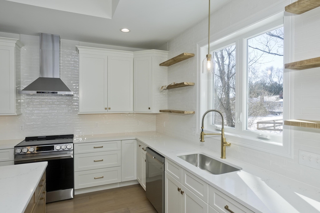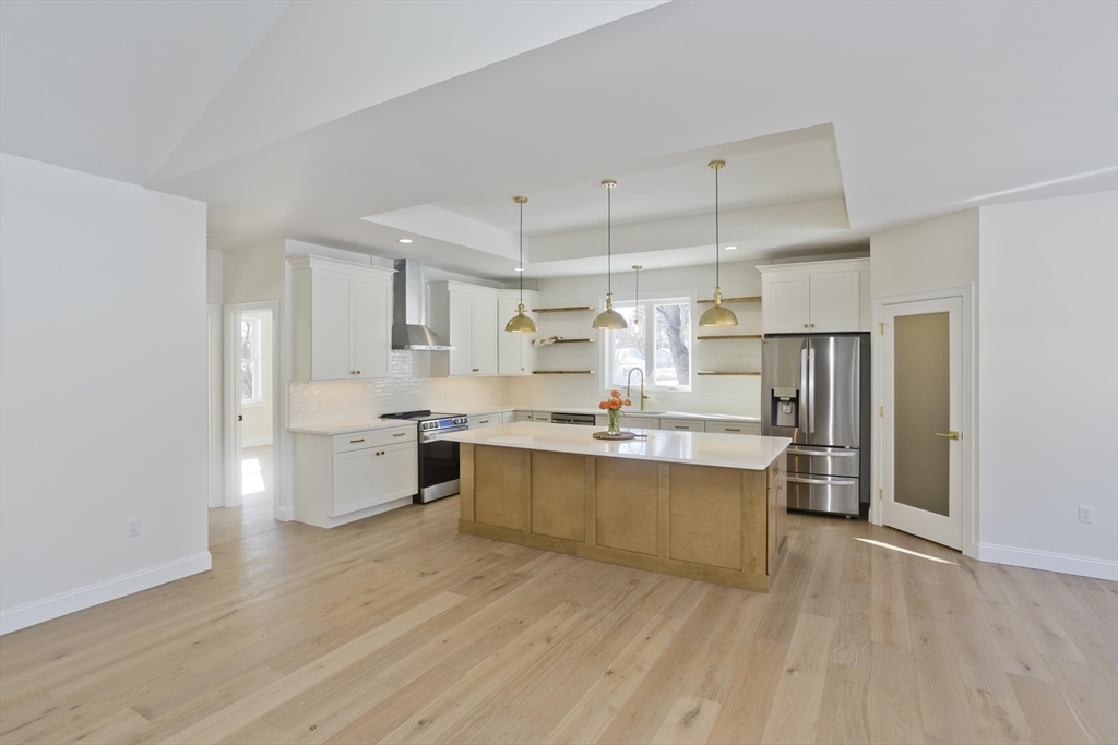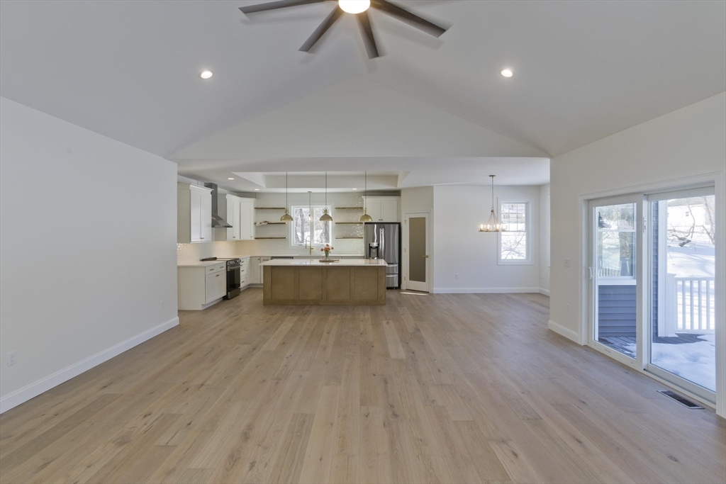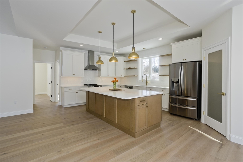 Welcome to this brand-new STUNNING 4 bdr Executive-style ranch home, perfectly positioned on over 2+ private acres and set back from the road for added privacy and curb appeal! Inside you will discover an open-concept floor plan highlighted by a cathedral ceiling and beautiful engineered wide-plank wood flooring that flows seamlessly throughout the home. The spacious great room serves as the heart of the home, featuring a custom fireplace that creates a warm, modern focal point for gatherings and quiet evenings. The gourmet kitchen is a true showpiece, complete with sleek quartz countertops, custom floating wood shelves, a tray ceiling, and an oversized island and pantry, ideal for entertaining! The private primary suite provides a peaceful retreat with glass enclosed shower with built-in seat and niche and double vanities! All this along with a 3-car garage and a partially finished basement for added flex space! Discover the perfect blend of tranquility and elegance!