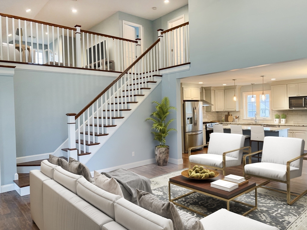 Step into a home that blends timeless Cape charm with fresh, contemporary design. This stunning open-concept retreat was crafted for the way you actually live — bright, airy, and effortlessly inviting. The moment you enter, your eyes are drawn upward to the soaring vaulted ceiling in the living room, where natural light pours in and the space feels expansive yet warm. It’s the kind of room that instantly says welcome — perfect for cozy evenings, lively gatherings, or simply stretching out and enjoying the openness. Upstairs, you’ll find two generously sized bedrooms, a full bath, and a versatile flex space that adapts to your life — home office, media room, playroom, fitness studio, guest retreat… you decide. The layout gives everyone room to spread out while still feeling connected.