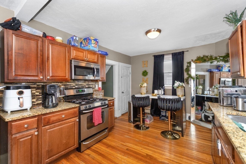Charming Colonial features 3 spacious bedrooms, 1 full bath with an additional unfinished 1/2 bath offering great potential for customization. The kitchen features granite countertops and a convenient pantry providing both style and functionality. Just off the eat-in kitchen, a sliding glass door opens to the back yard, creating easy indoor-outdoor living. Beautiful Hardwood floors flow throughout the home, adding warmth and character. A versatile bonus room can easily serve as a home office, sunroom, or flex space to fit your needs. Enjoy relaxing mornings or evenings on the inviting front porch, perfect for unwinding or greeting neighbors.