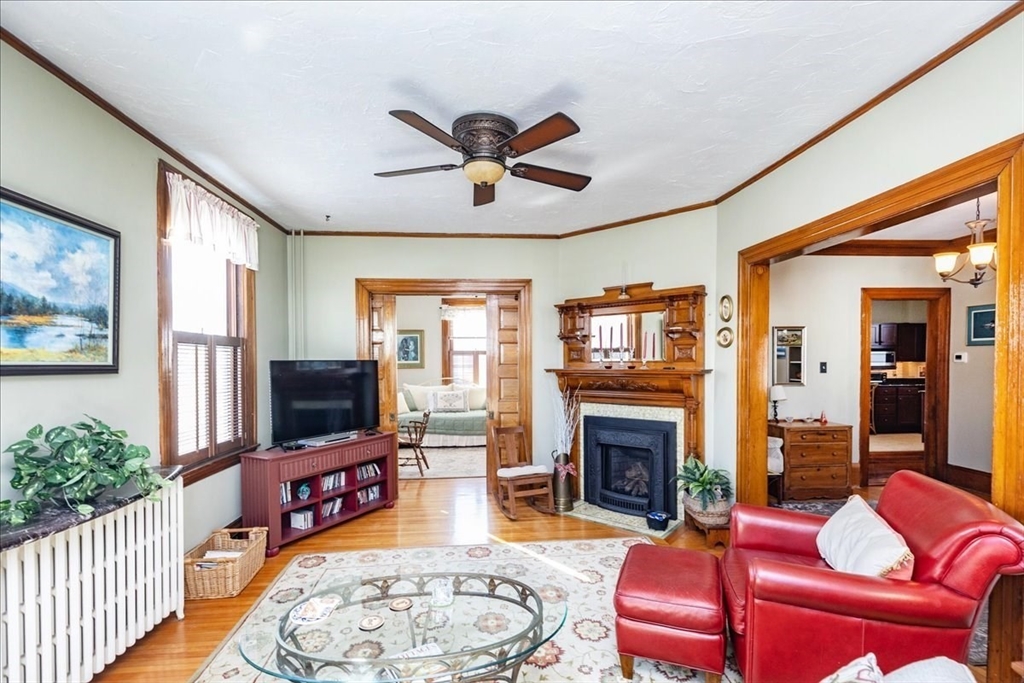 Step into timeless charm with this beautifully maintained Victorian condo offering the perfect blend of character and convenience. This first-floor unit in a classic duplex features 2 bedrooms and 1.5 baths, showcasing period details paired with comfortable modern living. Enjoy cozy evenings by the gas fireplace, and appreciate the ease of single-level living with a full basement providing excellent storage or potential workspace. A sizable backyard offers outdoor space rarely found with condo living — ideal for gardening, entertaining, or simply relaxing. Additional highlights include off-street parking, a brand-new roof, and a prime location just minutes from town, shops, dining, and local amenities. A wonderful opportunity to own a piece of Victorian charm in a walk-to-town setting — don’t miss it! OPEN HOUSE on 2/21/2026 from 11-1