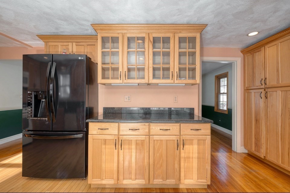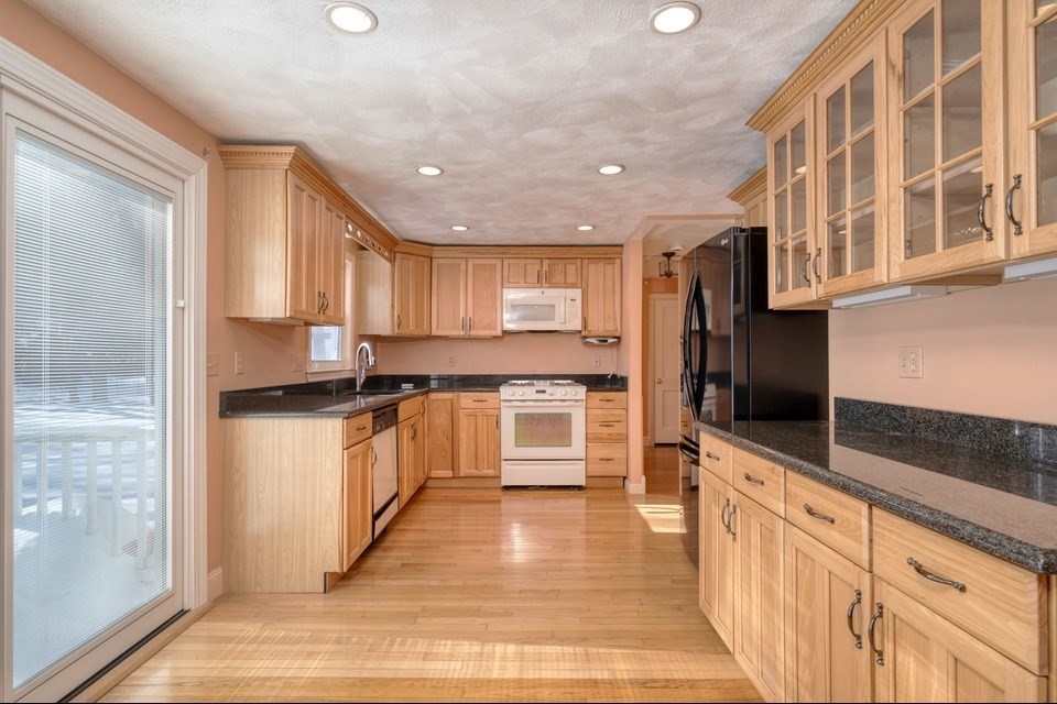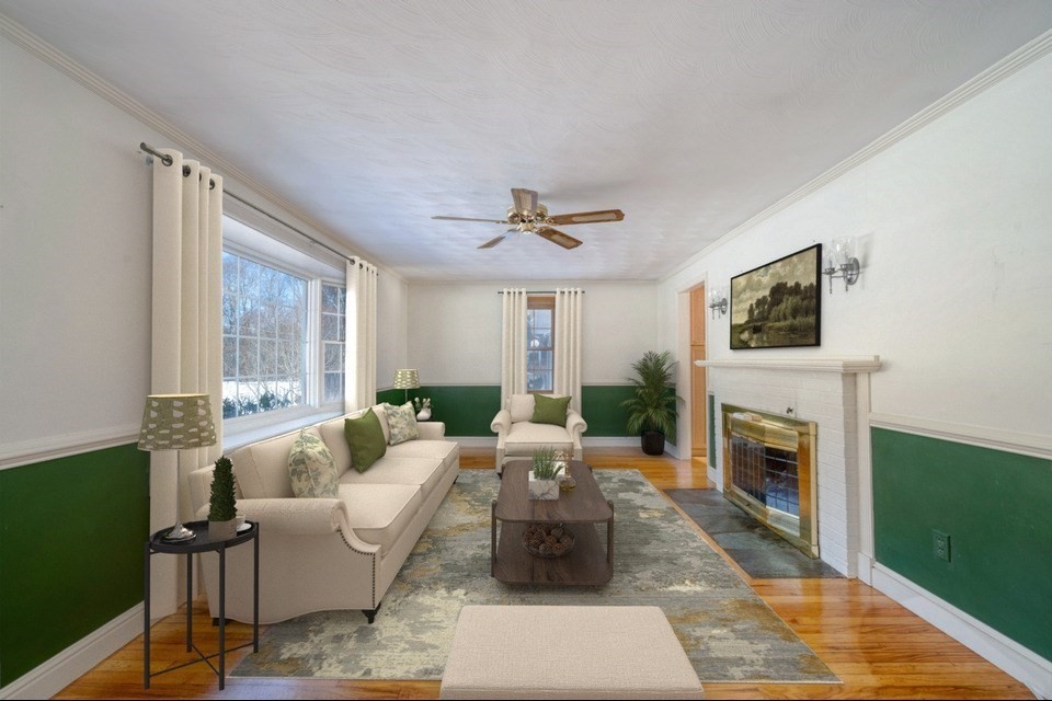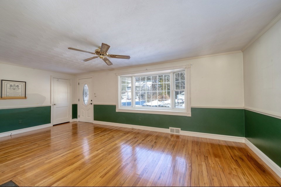 Tucked off of Common Street in Walpole, this 2-bedrm, 2-ba ranch offers seamless one-floor living in highly sought-after neighborhood. Sun-filled main level features kitchen w/ sliders to deck w/ int blinds, recessed lighting, dining area. Welcoming living room w/ gas fireplace (2023 gas log insert). Two bedrms and a full bath complete the first floor. Natural gas heat and central A/C provide year-round comfort. Lower level expands your living space with 2nd full bath and two versatile rooms, update for home office, guest space/gym/playroom. Completed in 2024, the 3-season porch overlooks the fully fenced backyard — an inviting setting for entertaining. One-car garage adds convenience and additional storage. Located just 1.2 miles to downtown Walpole, less than a mile to the highway, under 4 miles to Patriot Place, close to local schools. This home offers the perfect blend of neighborhood charm and convenience in one of Walpole's desirable locations.