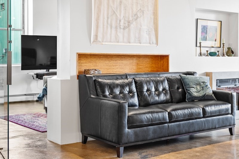 Available for rent is this modern designed loft in Boston's Historic Leather District. This corner LOFT features a proximity that allows for natural northeast light.The space features terra cotta rolled brick ceilings, polished concrete floors and an electric fireplace. Custom designed partitions divide the unit into various living areas. Glass and fabricated metal materials were used in this unique design. The loft has custom cabinetry and wardrobe storage systems. The kitchen is equipped with a complement of stainless steel appliances: gas range & oven, microwave, fridge and dishwasher. The newly installed countertops are a green Quartzite stone and there is an ample amount of maple cabinets. The bathroom has a large walk-in shower, wall mount sink and toilet. There is In unit laundry and central air conditioning. Heat, hot water and cooking gas are included in the monthly rent. Please NO SMOKING, NO PETS andNO UNDERGRADS. Available April 2, 2026.