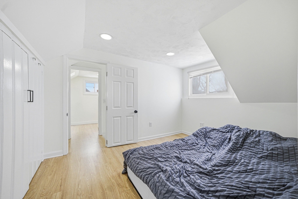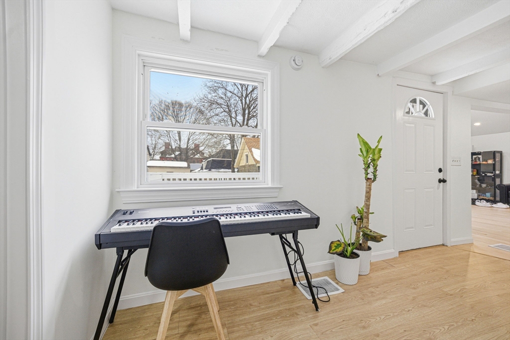 Welcome to this bright, sun-drenched home with lovely views of Flax Pond! The open-concept living and kitchen area features soaring cathedral ceilings and multiple skylights, creating an airy, inviting space filled with natural light. The kitchen is beautifully appointed with stainless steel appliances, white shaker cabinets, and granite countertops.The partially finished basement offers flexible space, perfect for a family room, home office, or workout area. The upper level features two, possibly three, bedrooms, including a pass-through room ideal for a nursery, office, or creative space. The spacious main bedroom is a true retreat, flooded with sunlight throughout the day. A wonderful opportunity to enjoy comfortable living with scenic pond views!