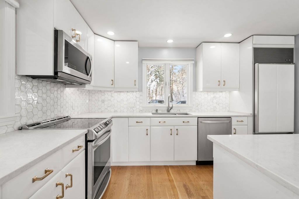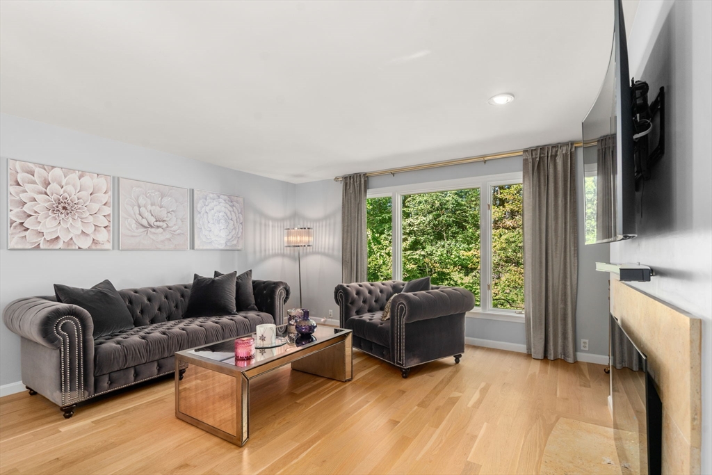 Effortless living meets modern design in this fully renovated 2-bedroom + dedicated home office residence, tucked at the end of a quiet cul-de-sac and surrounded by conservation land. With over 2,200 sq ft of light-filled space, this move-in-ready home suits today’s work-from-home lifestyle .A sleek quartz kitchen opens to a private deck with wooded views, while the expansive living room with contemporary electric fireplace is perfect for relaxing or entertaining. The king-size primary suite offers generous closets and a skylit spa bath, plus a spacious second bedroom and flexible den. The bright, semi-finished basement is ideal as a family TV room, playroom, gym, or potential extra bedroom. Major upgrades — white oak floors, roof, siding, windows, doors, skylights, and deck — provide turnkey ease. Snow removal, landscaping, pool, tennis courts and manicured grounds complete the lifestyle.