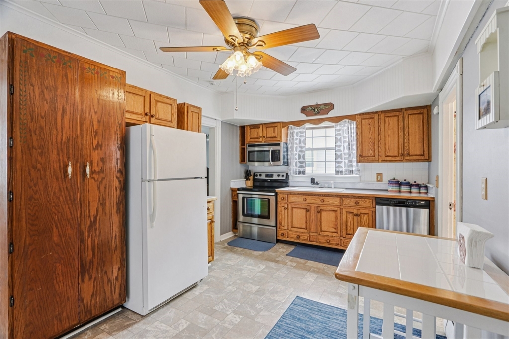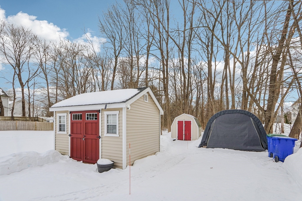 This charming home combines classic curb appeal with meaningful updates that make everyday living easy. Set behind a timeless white picket fence, the home offers a flexible floor plan with a first-floor bedroom and full bath, along with a comfortable living room, dining area, and kitchen designed for practical flow. A heated front room adds valuable bonus space perfect for a home office, reading room, or play area. Upstairs features two spacious bedrooms with plenty of natural light. Major improvements provide confidence for the next owner, including roof, siding, boiler, many newer windows, Mass Save insulation, a brand-new Roth double-lined oil tank, and a water heater. Outside, enjoy a deck, large backyard, and multiple storage sheds creating a property that balances character, functionality, and long-term value. Showings begin at open houses.