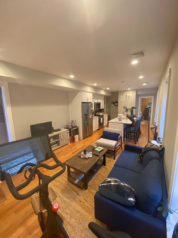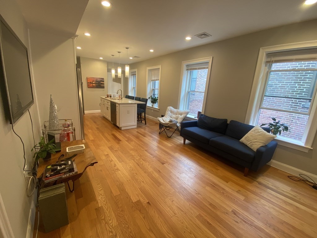 Be among the first to live in this stunning 4-bedroom, 2 full bathroom residence in one of the most sought-after neighborhoods. Thoughtfully designed and fully renovated from top to bottom, this home blends modern finishes with exceptional comfort. The sun-filled living space features gleaming oak hardwood floors and recessed lighting throughout. The open-concept layout includes a spacious living room and an eat-in kitchen highlighted by a quartz waterfall-style island overhang - perfect for entertaining. The chef’s kitchen is outfitted with white shaker cabinetry, quartz countertops, and a full suite of stainless steel appliances, including built-in dishwasher, disposal, and microwave. Enjoy oversized bedrooms with generous closet space, brand-new Pella windows, and spray foam insulation for superior energy efficiency and year-round comfort. Central heat and A/C, tankless hot water, and laundry in the building add everyday convenience. No undergraduates, please.