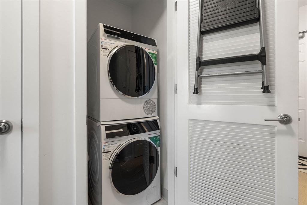 Enjoy luxury living at Port45! This townhouse style two bedroom, two and a half bathroom unit spans two floors with both street-front access and interior access to all the building amenities including garage, gym, club room and roof top overlooking the Boston skyline and harbor. With a private entrance, kitchen island seating, dining area and guest half bath this unit lives large with an overflow of natural light. Large en-suite primary suite with walk-in closet. In-unit laundry. Other luxury building amenities include daily concierge, pet spa, multiple common areas including roof deck with grilling station and dining area, and bike storage. One garage parking space included. Great public transportation options and easy walkability to downtown, Seaport and Southie favorites. Schedule a private tour today! No public open houses will be held.