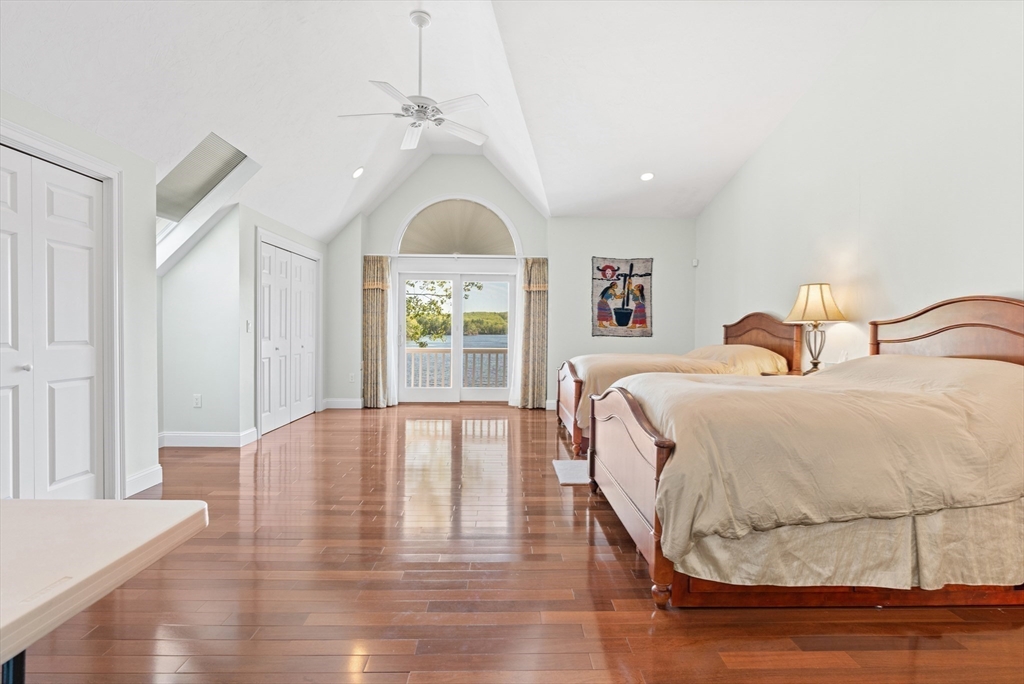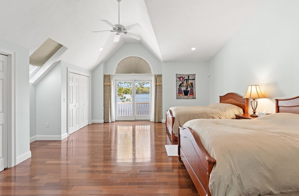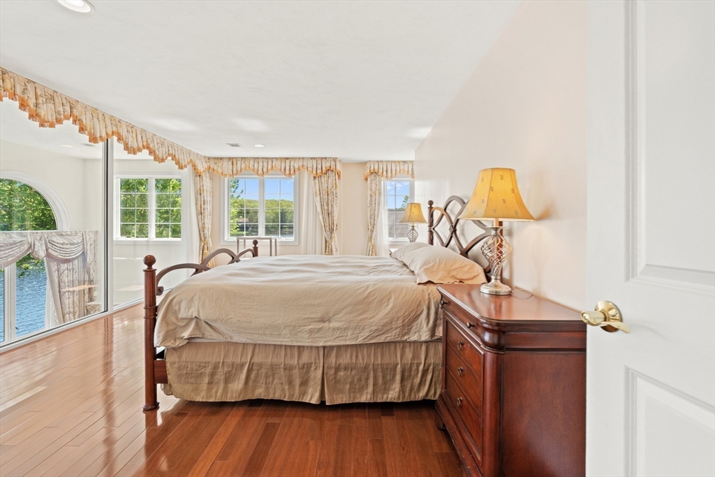 Welcome to your dream lakefront retreat! The eat-in kitchen is a chef’s dream, complete with rich cherry cabinetry, granite countertops, Viking microwave, Viking wall oven, Viking dish warmer, Wolf cooktop with power exhaust, Subzero refrigerator, trash compactor, and Fisher dual-drawer dishwasher. Entertain in the spacious dining area, perfect for large gatherings. The living room features a cozy gas fireplace and panoramic views of the lake. The first-floor bedroom suite offers gas fireplace, and walk-in closet. 2nd flr has main bedroom suite, additional bedroom, two flex rooms ideal for office, or guests. 3rd flr, you’ll find an additional full bath, walk-in closet, and office. The lower level has a wet bar and family room walk out private backyard oasis with your own beach and 24 ft dock. Enjoy lakefront living at its finest! Experience the Lake Shirley lifestyle! PUBLIC OPEN HOUSE Saturday, Feb 21st 11-1. Schedule your showing today!