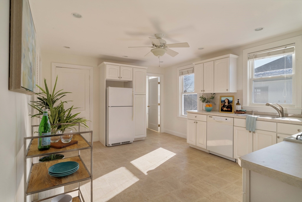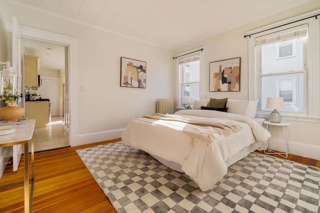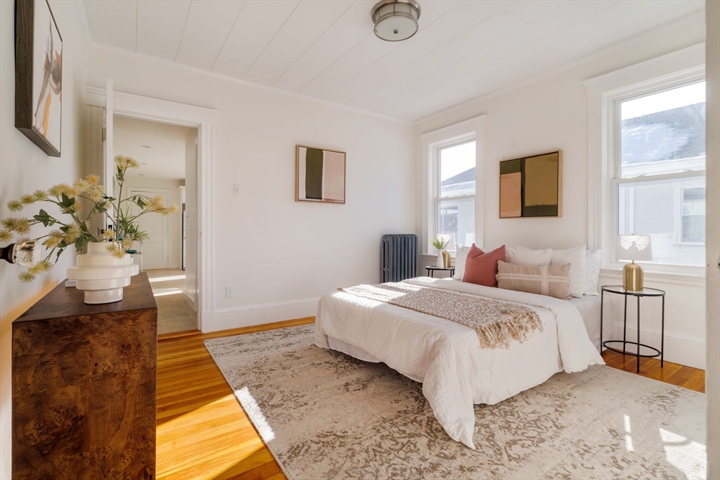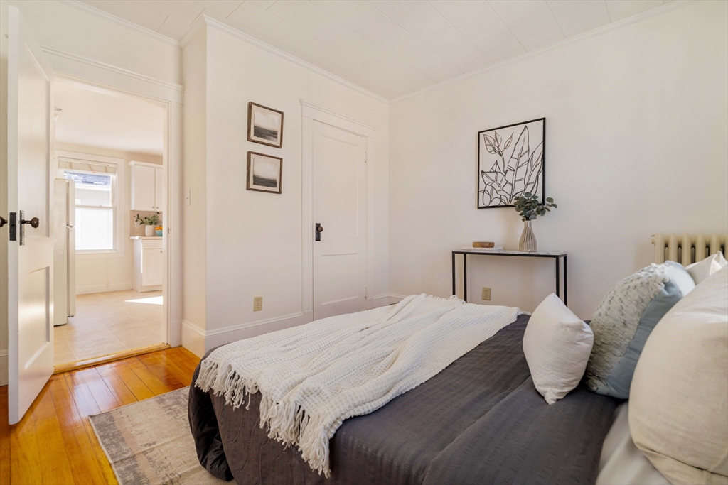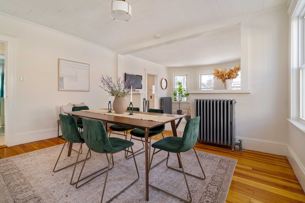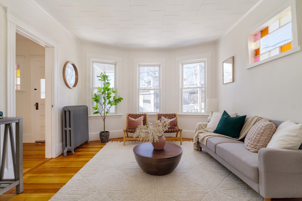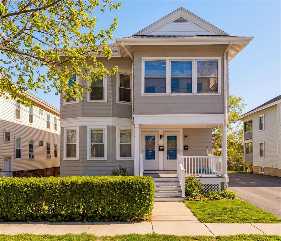 Well maintained and rarely available, this Belmont two-family offers driveway parking and a generous backyard. Both apartments feature open-concept living and dining areas, crown molding, hardwood floors, oversized windows, and charming stained-glass accents. Well-proportioned bedrooms and enclosed three-season porches provide flexible space, ideal for a home office or gym. Each apartment includes an eat-in kitchen, tiled bath, and a dedicated laundry room. The first-floor has a renovated kitchen with classic wainscoting, while the upper apartment offers a renovated bath, enclosed front and rear porches, and attic storage. The basement stands out with high ceilings and painted walls and floors, offering endless possibilities for music, exercise and crafts! Outdoors, the large grassy backyard is partially fenced and includes storage beneath the rear stairs. Conveniently located near shops, dining, public transit, and major routes. Delivered vacant. Offers will be entertained 2/24@12pm.