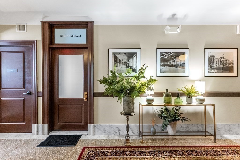 Luxury one-bedroom apartment with historic character in the heart of Plymouth’s Downtown Harbor District. Located at Post Office Square, just steps from the waterfront, restaurants, shops, and local landmarks. This one-bedroom, one-bath residence features key-fob entry, an open floor plan, high ceilings with recessed lighting, luxury vinyl plank flooring, stainless steel appliances, granite countertops, private 265 sq ft roof deck overlooking Brewster Gardens. and a custom tiled walk-in shower built inside a former bank vault. Additional amenities include in-unit laundry, central A/C, and one assigned off-street parking space. Available April 1, 2026. One-year lease. No pets. No smoking.