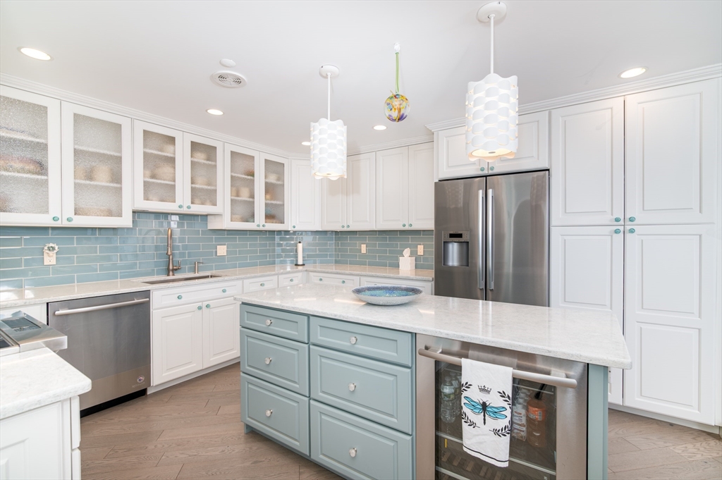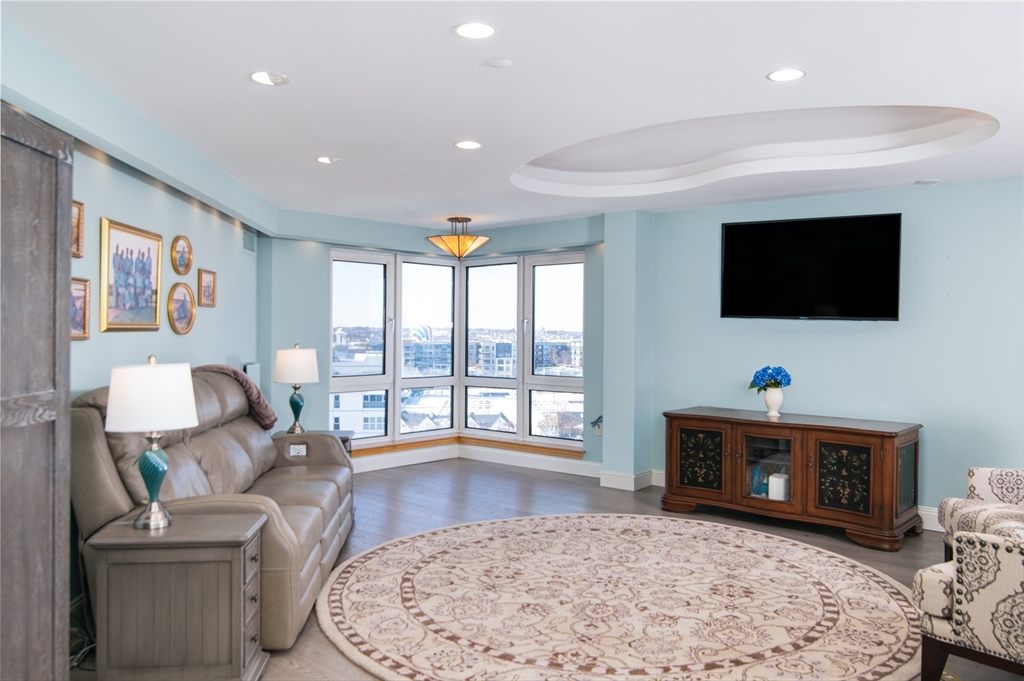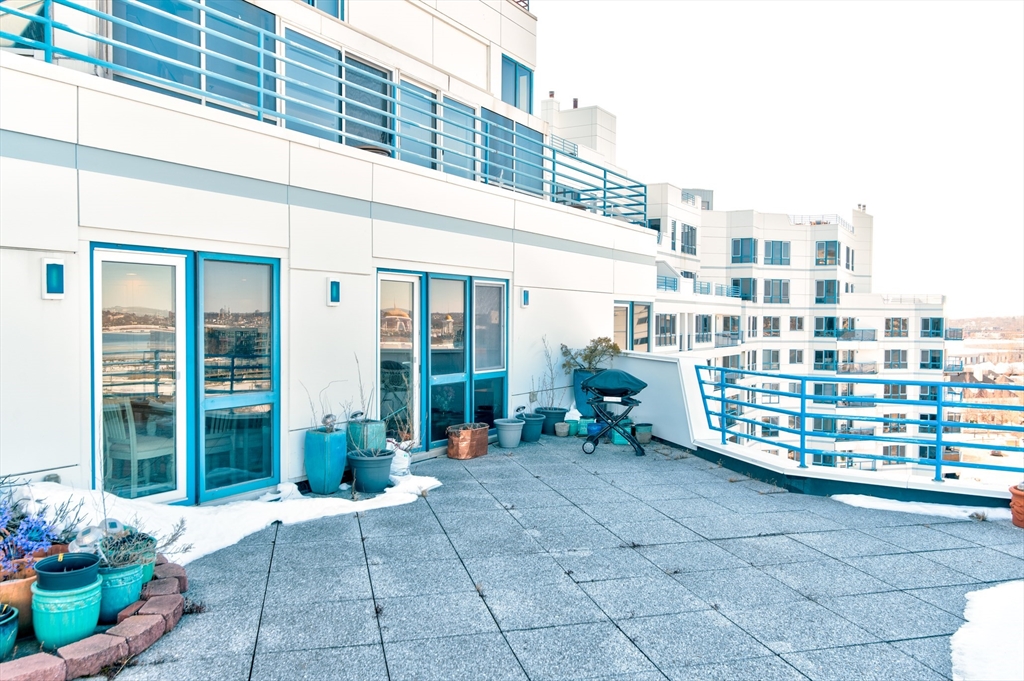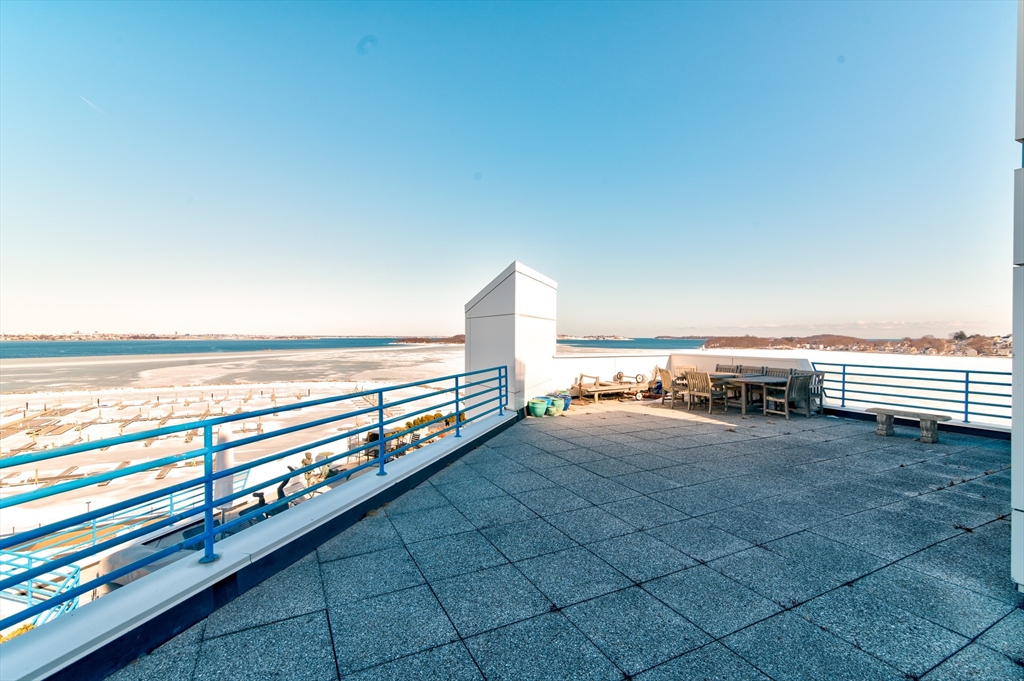 The best of Marina Bay. Spectacular( LARGEST PENTHOUSE IN MARINA POINT,) (2503 sq ft) end unit,7th floor. Tremendous unobstructed views overlooking the Boston skyline, Boston Harbor, Quincy Bay, and Logan Airport.. Sunrise/sunset, unit has complete views of North, East, South and West. This designer unit flows with elegance. Large rooms, plenty of closets including walk -in closet in MBR. Unique fireplace in family room. Kitchen is white and shows to perfection. Master Bath includes a Jacuzzi tub, walk in shower (handicapped accessible) and enclosed sauna (Black Marble}. 3 baths, 1200 square foot terrace, accessed from the living room for entertainment and enjoyment, gorgeous views. 2 deeded garage level parking.24 hour concierge service. Complimentary shuttle to North Quincy T. Seasonal ferry service to Boston/seaport/logan. Marina Boardwalk with excellent restaurants and shopping.