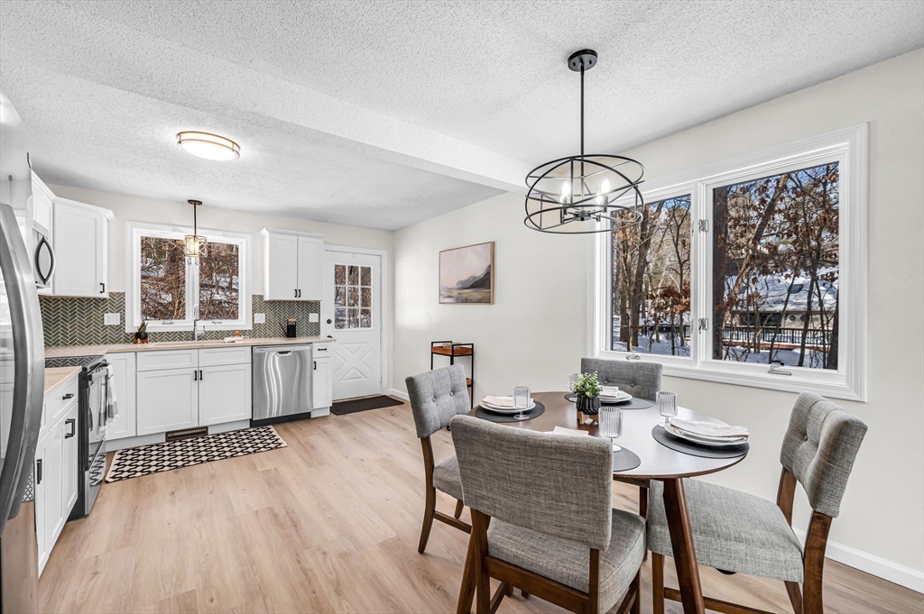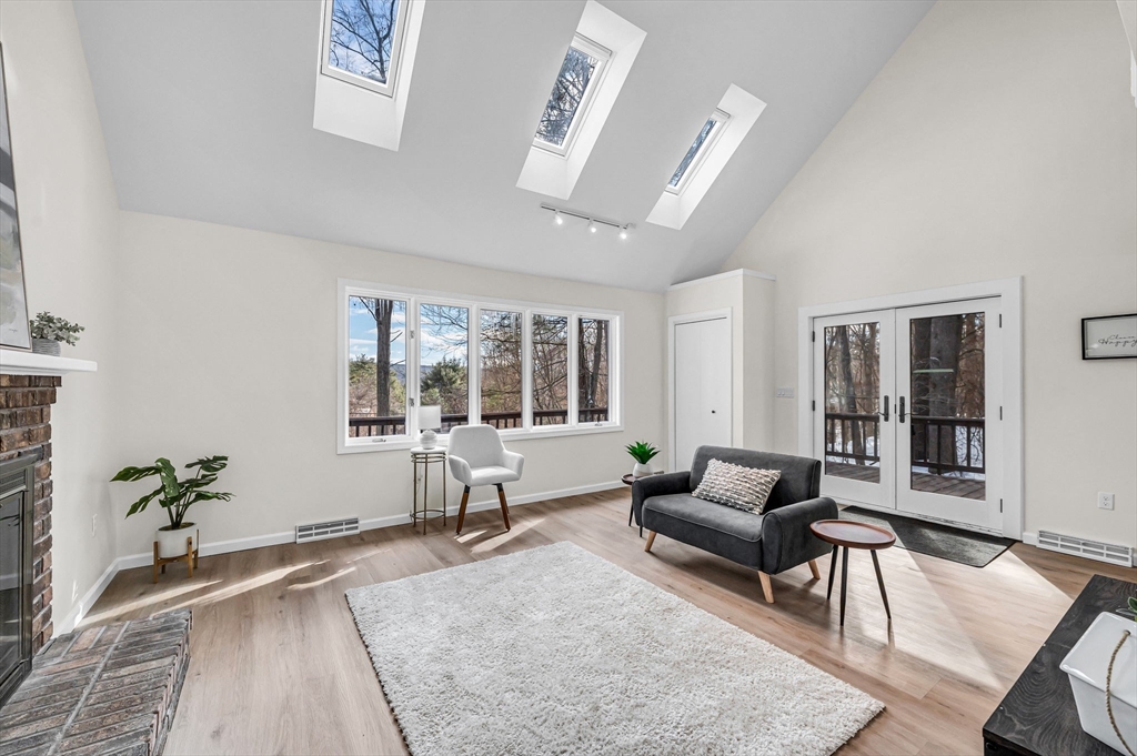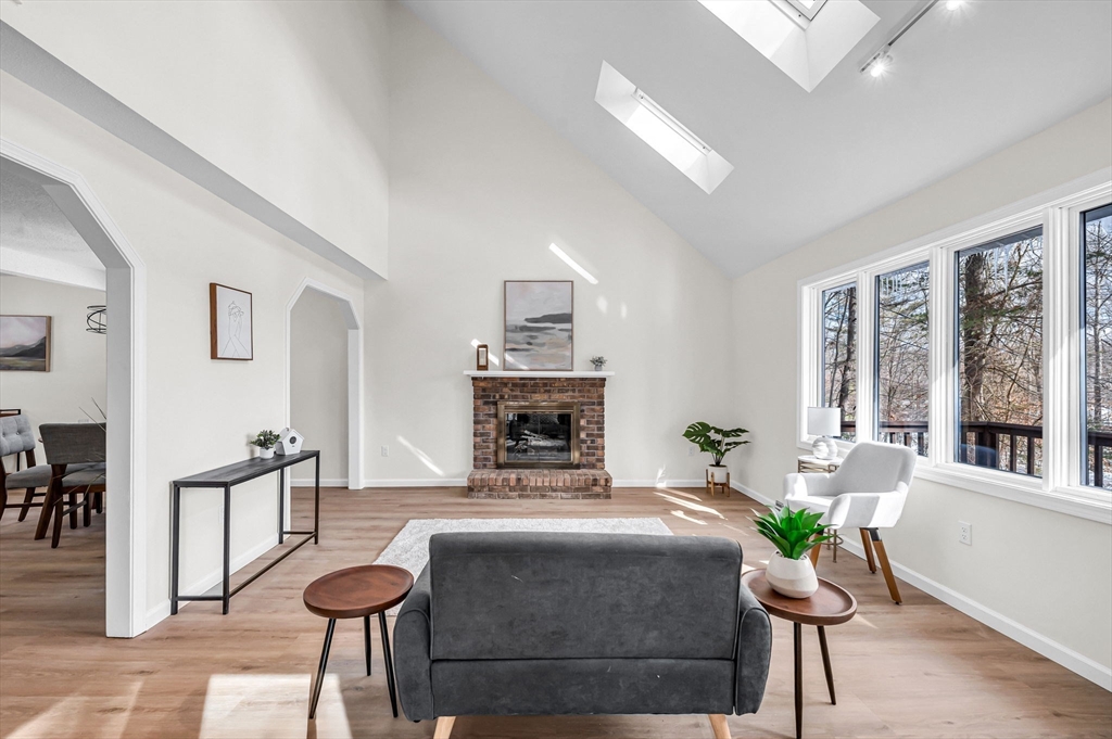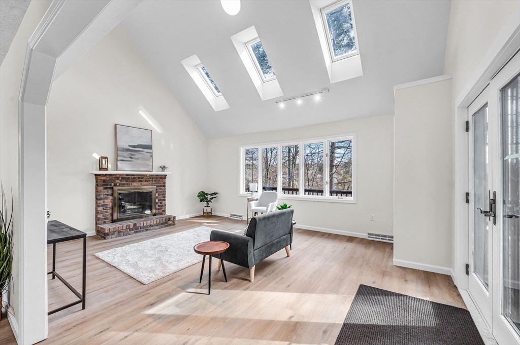 Fall in love with this updated Contemporary Home! So many recent improvements, such as new flooring, fresh paint, new kitchen, 2 updated full baths, and Beaver Lake beach/boating rights! Come on up to the large wrap-around deck to enter the home. The living room features a wonderful fireplace, skylights, and a vaulted ceiling which is open to the 2nd floor loft area. Imagine cooking for friends and family in your gorgeous kitchen with new shaker cabinets, stunning herringbone tile backsplash, new stainless appliances, and new quartz countertops. Easy entertaining continues with a connected dining area. Down the hall is the first floor bedroom with double closets and full updated bath with new vanity, flooring and lighting. Upstairs are 2 large bedrooms (1 with balcony!) with double closets and another lovely updated full bath. The basement has much potential for additional space with sliders for walk out. Low HOA yearly fee, deeded access to the beach, lake and community events!