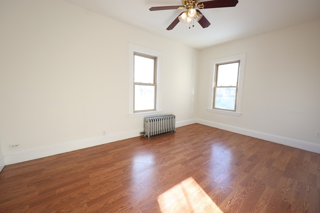 Spacious two bedroom (one bedroom plus office/bedroom) apartment on the second floor of a two family home on a quiet dead end street in Roslindale. Large living room and spacious bedrooms with hardwood floors throughout. Sunny eat-in kitchen featuring gas cooking. The apartment includes a renovated full bathroom. Tenants can enjoy a shared yard, plus off-street parking is available along with easy on-street parking. Available for immediate move-in.