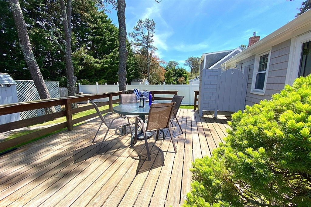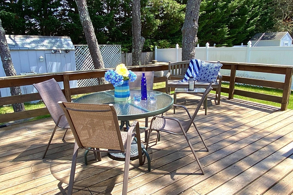 Think sand castles, cool water, small breeze, and a short (.5mile) stroll to beautiful Dennis beaches. The kind of place that speaks generations of memories - ice cream cones at the beach, salty bathing suits, BBQ on the deck for a hungry group after hours at the beach. With an outdoor shower, fenced private back yard, and a large shed for beach gear and a deck for relaxing, this cottage speaks Cape Cod. A gas fireplace in the living room (with a distinctive piece of art). The house has 3 mini-splits for year-round heating and cooling. Great for winter getaways or year-round living. In a small-scale space, the compact kitchen has stainless steel appliances and can serve up tasty meals year-round. The dining area, with a wood vaulted ceiling, is large enough to fit a good-sized table. For convenience, there are 2 driveways, lovely plantings, and a green yard. It is a pleasure to show a sweet home ready for new memories to begin. Flood insurance costs approximately $1250