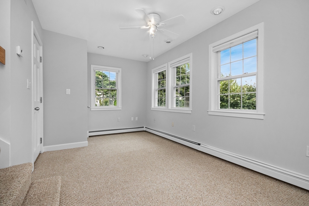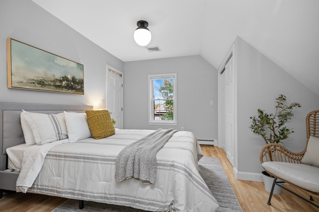 Welcome to 87 Holworthy Unit 3, a bright and spacious one-bedroom + office condo in Cambridge’s desirable Strawberry Hill neighborhood. This top-floor home features soaring vaulted ceilings with exposed wooden beams, hardwood floors, abundant natural light, and generous closet space. Plus, an additional unique loft-style sleeping area that adds both character and functionality. For relaxation, it features a large private rear deck and a charming front porch, ideal for savoring morning coffee or unwinding in the evening. Additional highlights include private basement storage, in-unit W&D, and ample on-street parking. Conveniently located near Sofra Bakery, Star Market, and the shops and restaurants of Huron Village, with easy access to Fresh Pond, Harvard Square, and public transportation. An outstanding opportunity to own in one of Cambridge’s most sought-after neighborhoods.