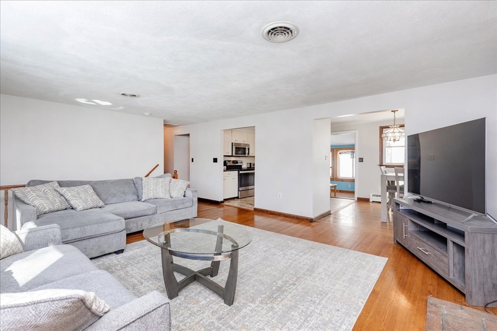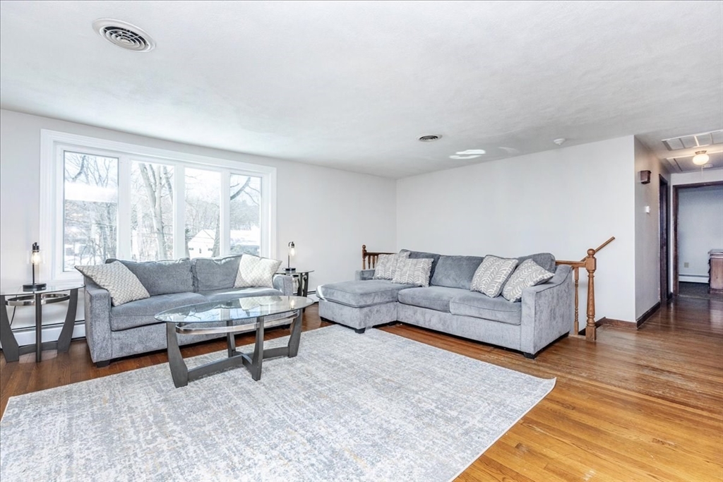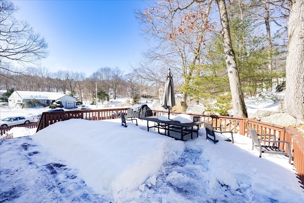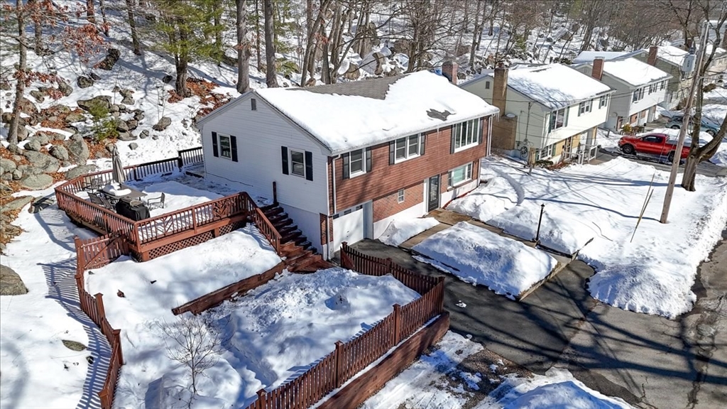 Come and feel the warmth of this 4 bedroom raised ranch, located in the heart of a well-established, convenient cul-de-sac neighborhood. It's a commuter's dream, with proximity to all South Peabody has to offer! A multitude of downtown shops and restaurants are easily accessible, along with highways, two golf courses, several schools/parks, and Bartholomew Pond around the bend! After admiring the private, wooded outdoor space and ginormous deck made for entertaining - step inside and feel solid hardwood on your feet. New windows show off the bright living room, warmed by a pellet stove. Practical kitchen with endless cabinetry. Dining room leads to enclosed sun porch - a perfect getaway! Down the hall are 3 generous bedrooms, with a full bath rounding out upper level. Head downstairs to find a 4th bedroom, full bath, and laundry, along with an office/utility room. Just past the drop zone, the attached 1 car garage has tons of storage. No history of seepage, per seller. On public sewer.
