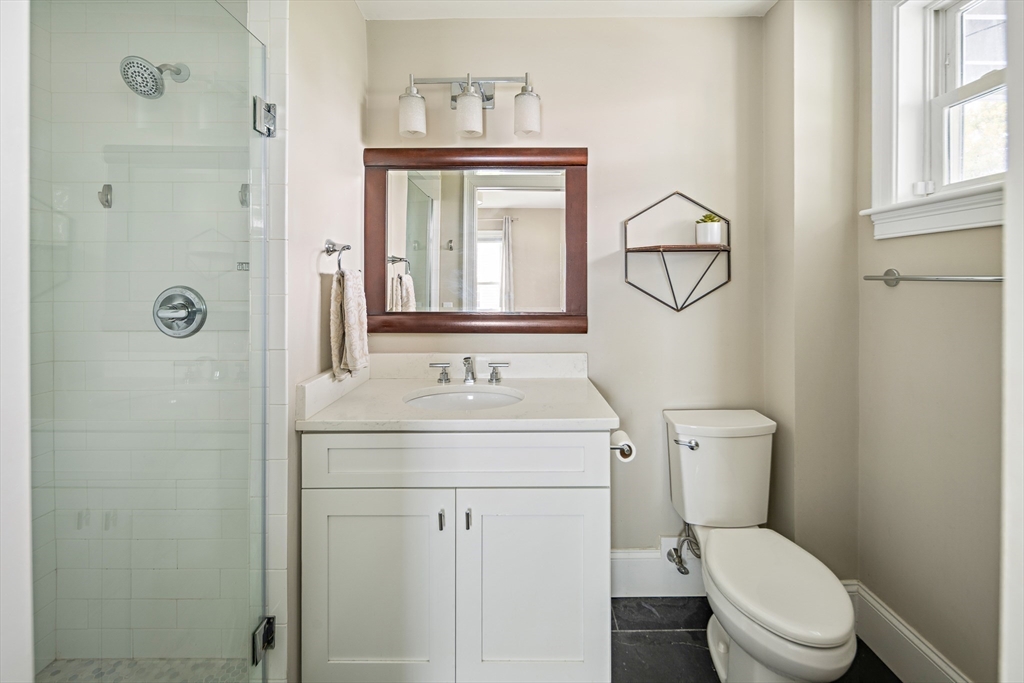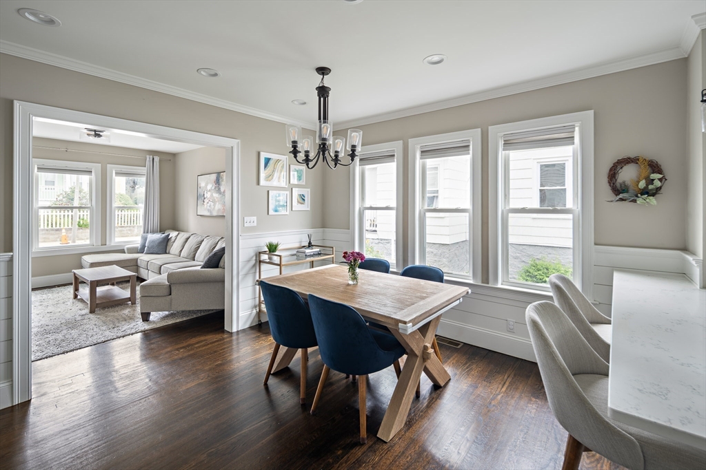 Welcome to 57 Fairmount Street, a thoughtfully renovated 3 bed/2 bath condominium where classic Dorchester character meets modern, easy living. Located on the Milton/Dorchester line, this home offers convenient access to Ashmont & Lower Mills. Renovated in 2017, it is truly move-in ready. The open layout is filled with natural light and features dark hardwood floors and a well-designed kitchen with white shaker cabinets, quartz countertops, stainless steel appliances, a gas range, and pendant lighting. The primary suite includes a private ensuite bath, while two additional bedrooms offer flexible options for everyday living or work-from-home needs. Outdoor spaces include a welcoming front porch, a private rear deck & shared yard access. Additional highlights include in-unit laundry, tankless hot water, generous basement storage, and two off-street parking spaces. Approximately 0.7 miles to Ashmont Station, with nearby dining, shops, and neighborhood amenities.