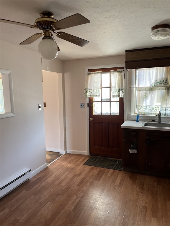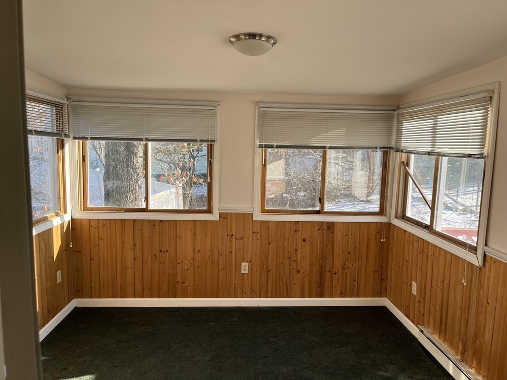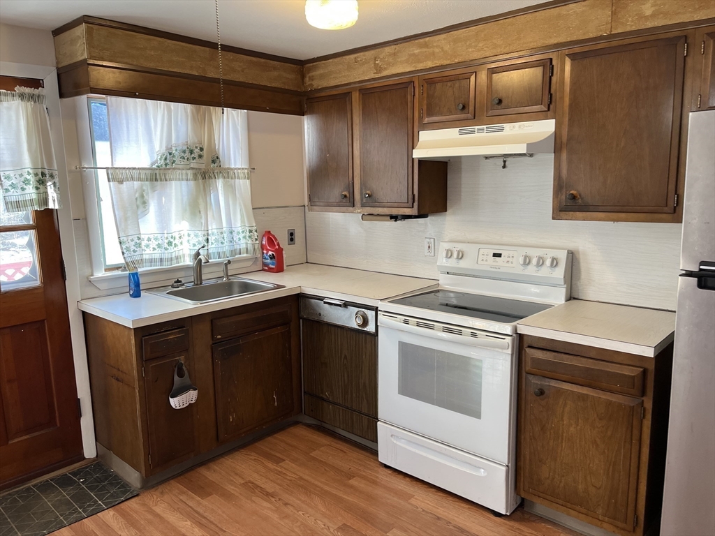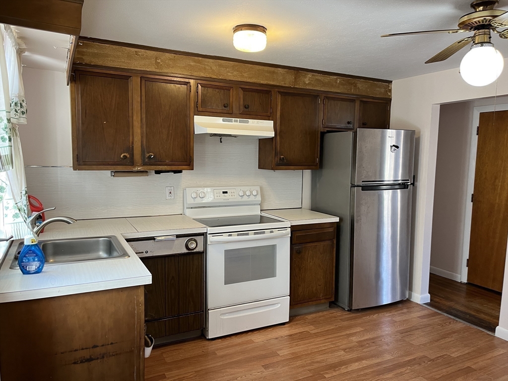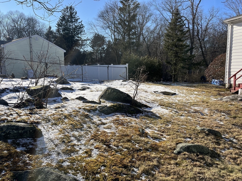 Warm ranch home located on a corner lot in a quiet residential neighborhood. Brilliant sun all day long. Large living room with wood floors and pretty picture window overlooking the private green space as well as the peaceful residential neighborhood. Eat in kitchen with plenty of cabinet space and counter space, perfect for an avid cook. Bright and sunny Den located off of the generous living room. Three bedrooms with one and one half tile baths. Down stairs features another bonus room with decorative fireplace. Full washer and dryer also tucked downstairs. Bus transportation near by to commute to Ashmont Station in Boston. Public schools and shopping nearby. A must see property.