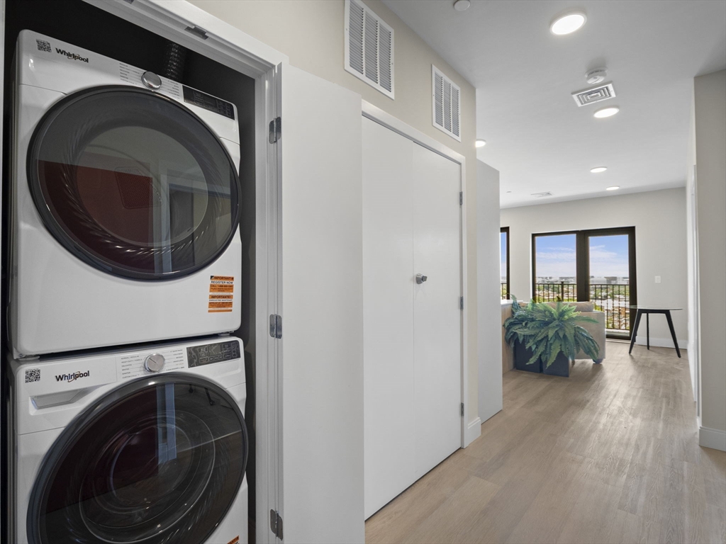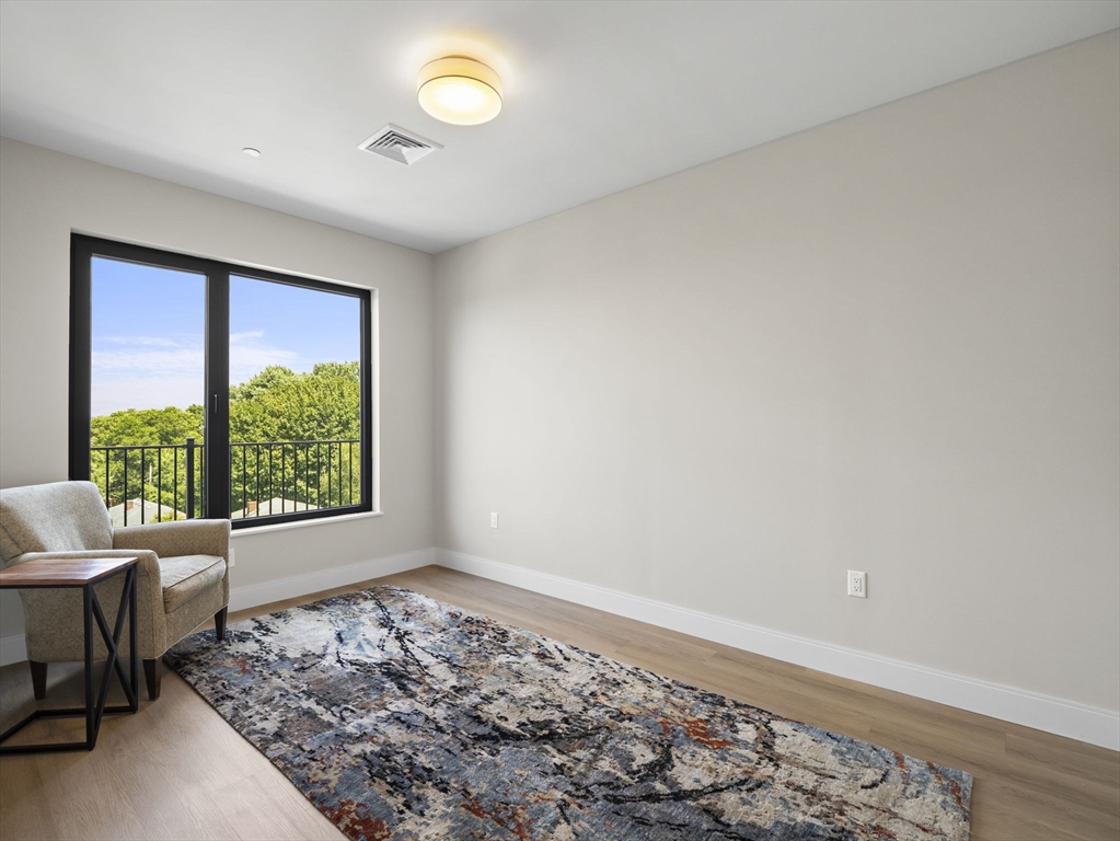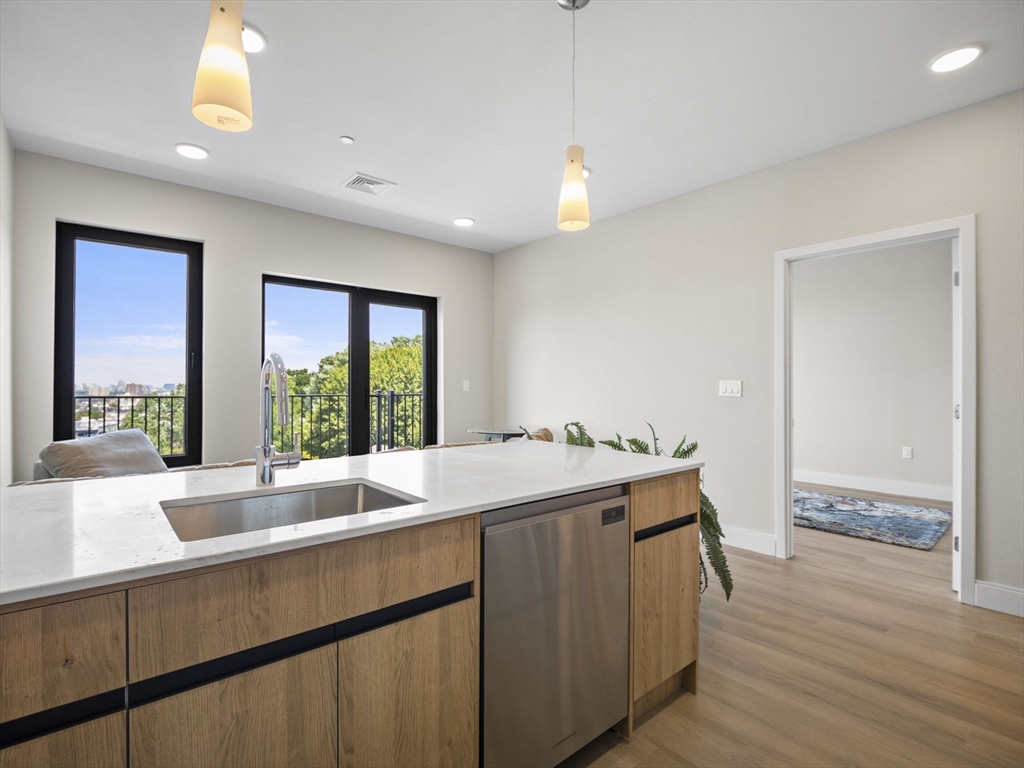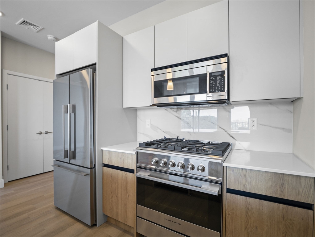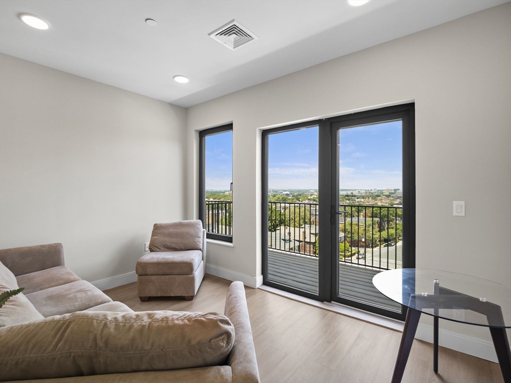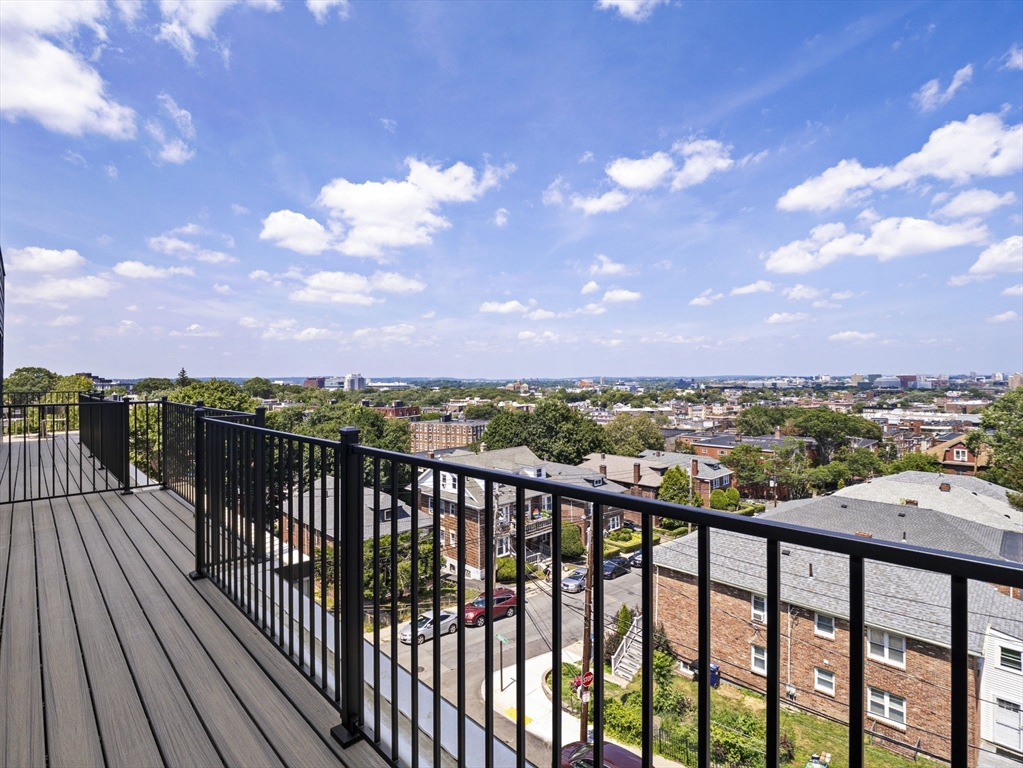 Rare chance to live in brand new PENTHOUSE level unit has a huge wraparound private deck with city views! This bright and open 1-bedroom, 1-bath unit is located in the heart of Brighton steps from Comm Ave. Hardwood floors throughout, large windows, and a modern kitchen equipped with stainless steel appliances and quartz countertops. The spacious bedroom has a walk-in-closet. Enjoy all of the common high-end amenities including a gym, ground level patio and spacious roof deck with city views. Unit comes with a washer & dryer, central air/heat, and an assigned parking space in the heated garage. The building is professionally managed. Reduced security deposit rate for those who have excellent credit and well-established work history.