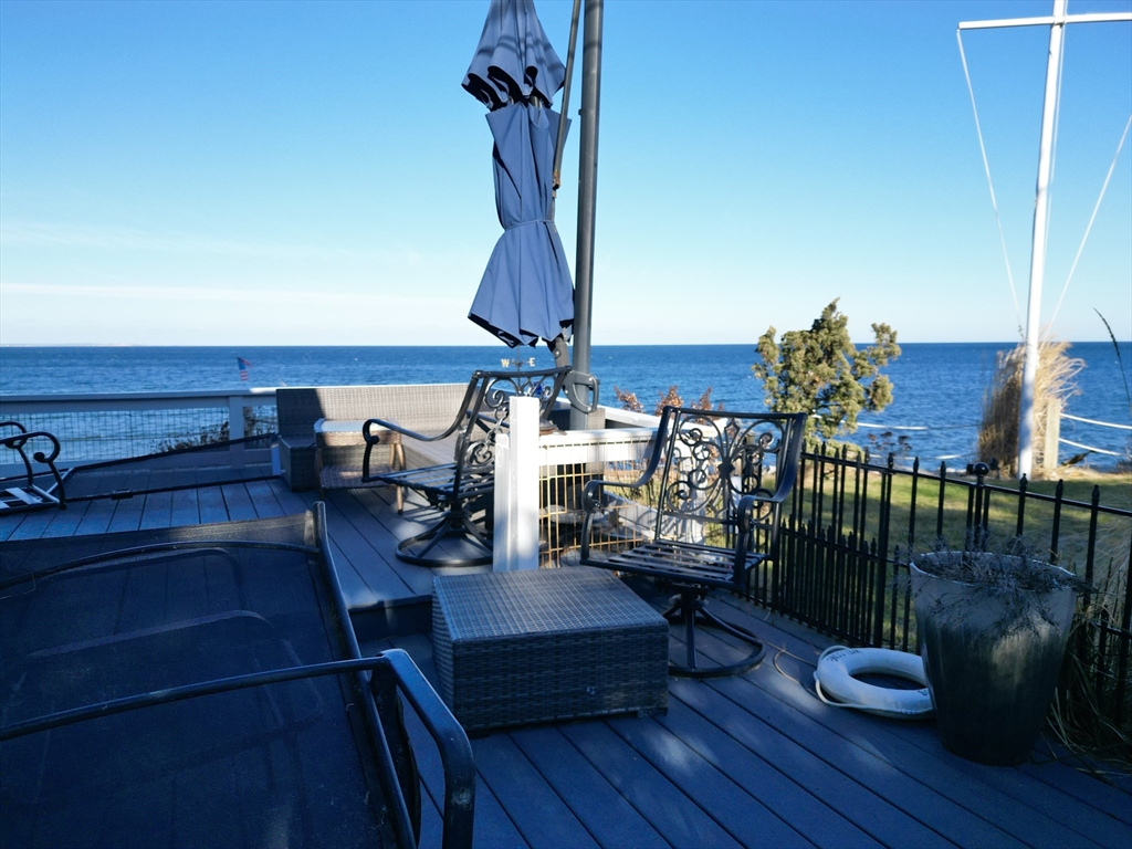 **WEEKLY SUMMER RENTAL - OCEANFRONT MANOMET POINT** Fully furnished and beautifully updated 1-bedroom, 1-bath oceanfront cottage available for weekly rentals, $2500 per week, Saturday to Saturday beginning June 6, 2026, with consecutive weeks available. This coastal retreat offers ocean views from nearly every room, a bright open living area, modern kitchenette with dishwasher and glass cooktop, spacious bedroom, spa-inspired bathroom with waterfall shower, and in-unit washer/dryer. Sliding glass doors lead to a private ocean-facing deck, perfect for enjoying the waterfront setting. Privately tucked below the road and accessed by a short stairway, offering exceptional privacy and tranquility. Linens, bath towels, and beach towels provided. Conveniently located near the private beach access, local restaurants, Route 3, Historic Downtown Plymouth, and Cape Cod. Weekly rentals only. Actively booking Summer 2026.