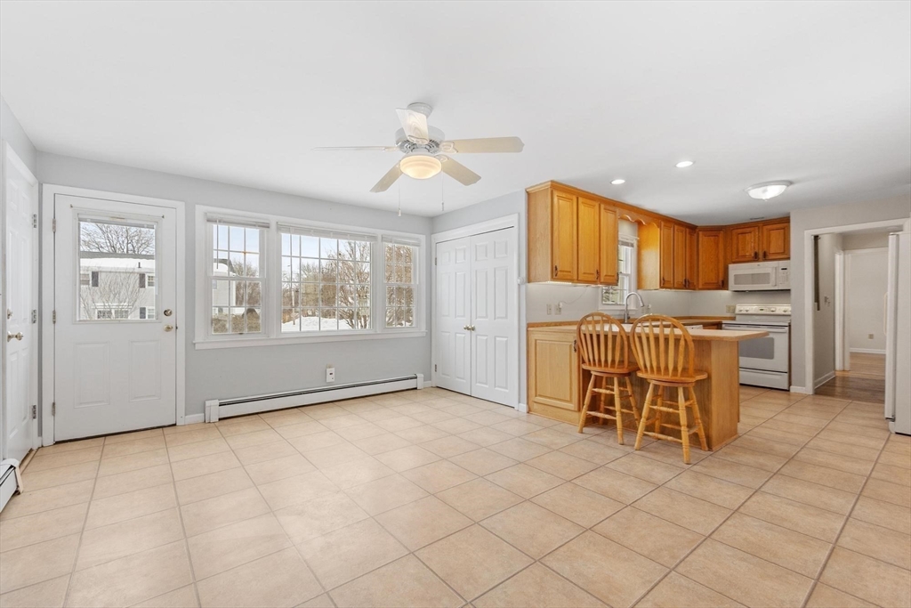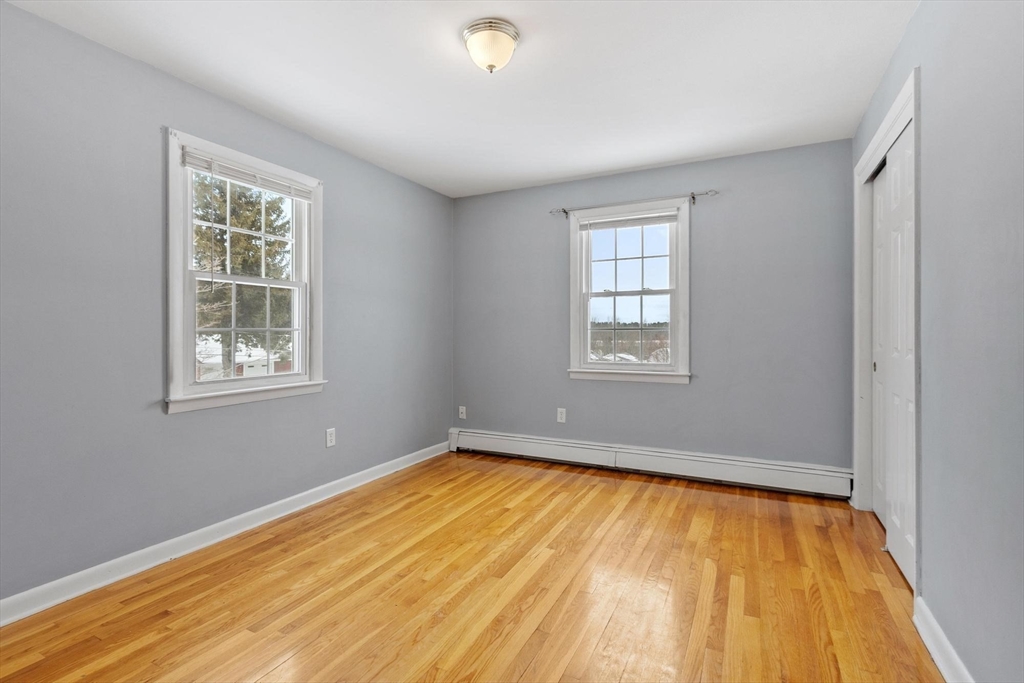 Rare 4 bedroom rental opportunity in Westminster, with pets negotiable! Well-maintained single family home with 1,856 square feet of living space. Large, bright rooms include formal dining room with built-in hutch, spacious eat-in kitchen, and living room with custom built-ins. Beautiful hardwood floors in many rooms--no carpet anywhere. Four bedrooms upstairs, with 1.5 updated bathrooms. First floor laundry with washer/dryer included. Walkout basement and attached 2-car garage offer excellent storage. Enjoy the composite deck overlooking a flat, grassy yard. Hot water baseboard heat. Paved driveway with 4 parking spaces. Close to schools, highway access, and local amenities. Requirements: first, last, security deposit, references, and background/credit check. Tenant responsible for snow removal, lawn care and utilities (with landlord responsible for water/sewer). No smoking. Open houses: Thursday 2/19, 4:30pm-6pm and Saturday 2/21, noon-2pm. Apply through Zillow Rentals.